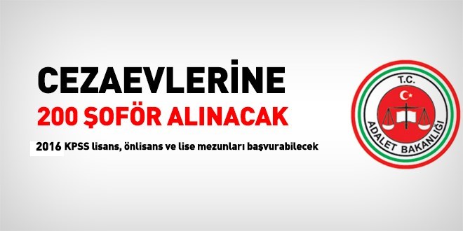 1. Ceza ve Tevkifevleri Genel Müdürlüğü taşra teşkilatının personel ihtiyacı için 9,10, 11 ve 12'nci dereceli kadrolara EK-2 listede belirtilen yerler için 200 şoför alımı yapılacaktır.