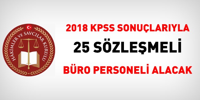 Hakimler ve Savcılar Kurulu Genel Sekreterliği emrinde 657 sayılı Devlet Memurları Kanunu'nun 4 üncü maddesinin (B) fıkrası kapsamında istihdam edilmek ve 06/06/1978 tarihli ve 7/15754 sayılı Bakanlar Kurulu Kararı ile yürürlüğe konulan Sözleşmeli Personel Çalıştırılmasına İlişkin Esaslara göre çalıştırılmak üzere Hakimler ve Savcılar Kurulu Personeli Sınav, Atama ve Nakil Yönetmeliği hükümleri çerçevesinde aşağıdaki tabloda adedi ve unvanı belirtilen boş pozisyonlara, 2018 yılı KPSS puanı esas alınarak yapılacak yarışma (uygulamalı ve sözlü) sınav sonucuna göre toplam 25 sözleşmeli büro personeli alımı yapılacaktır.