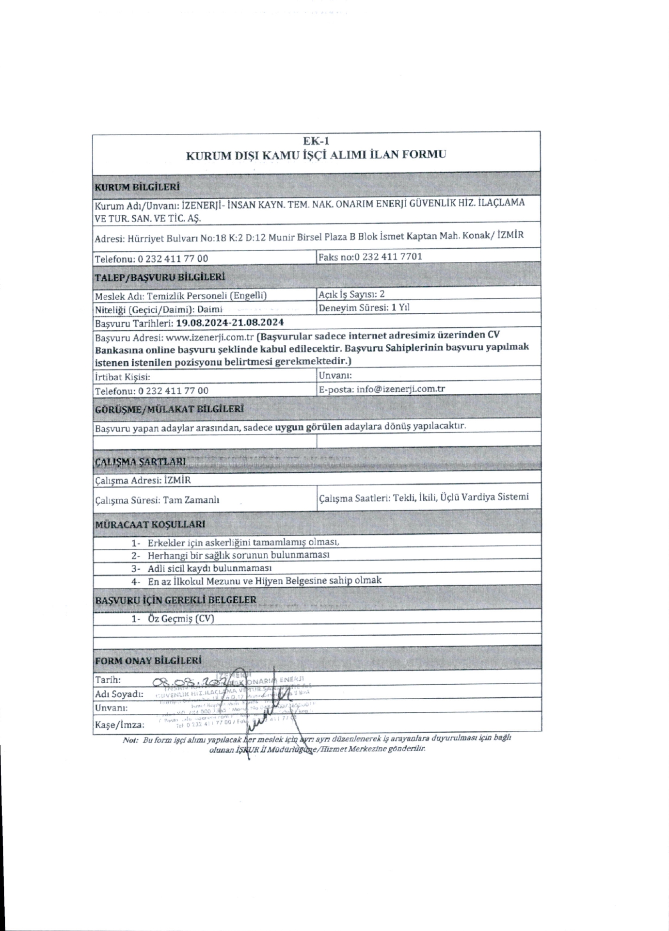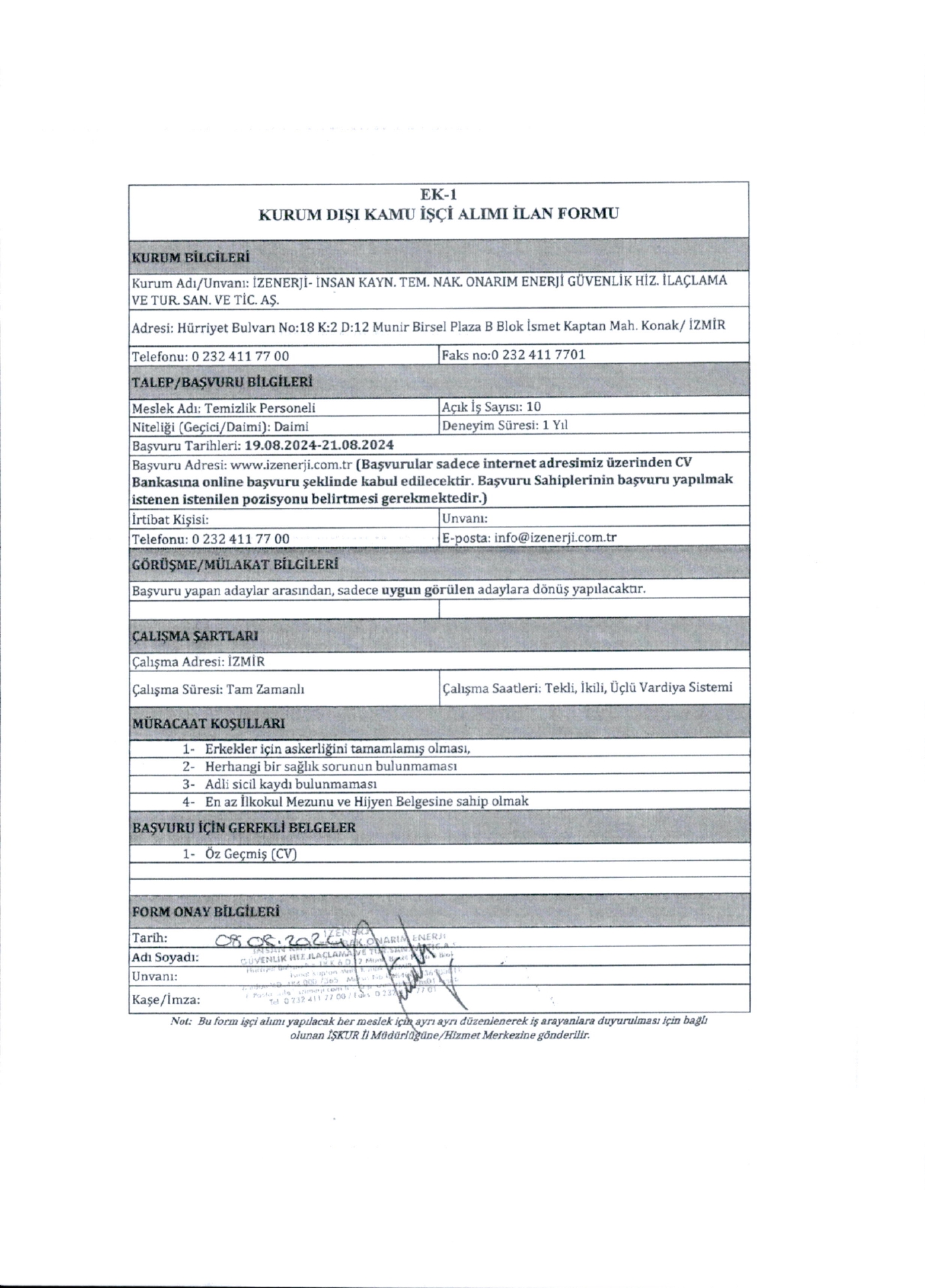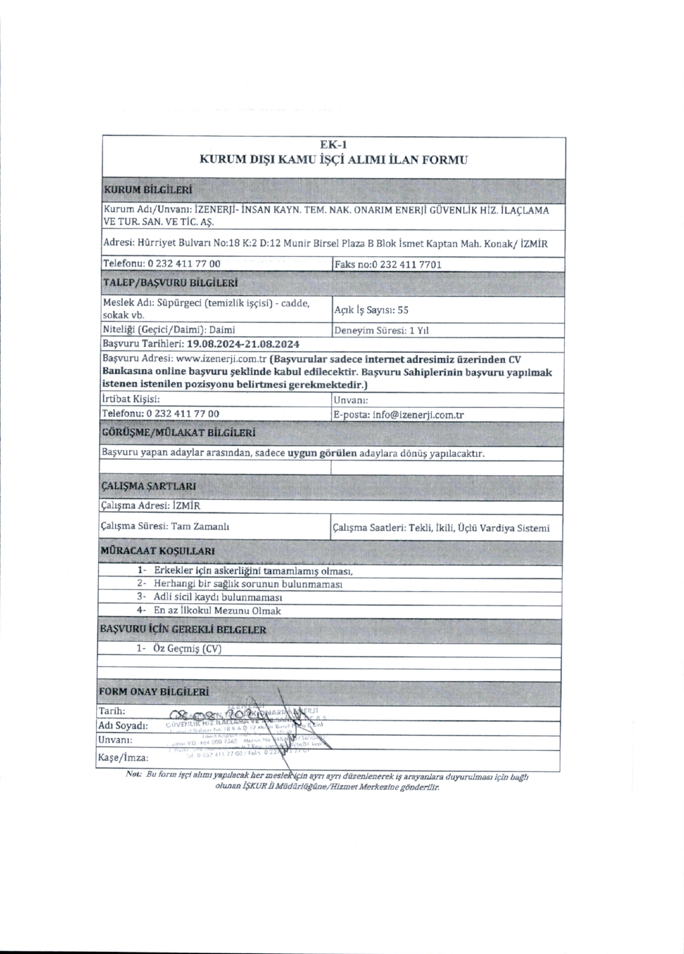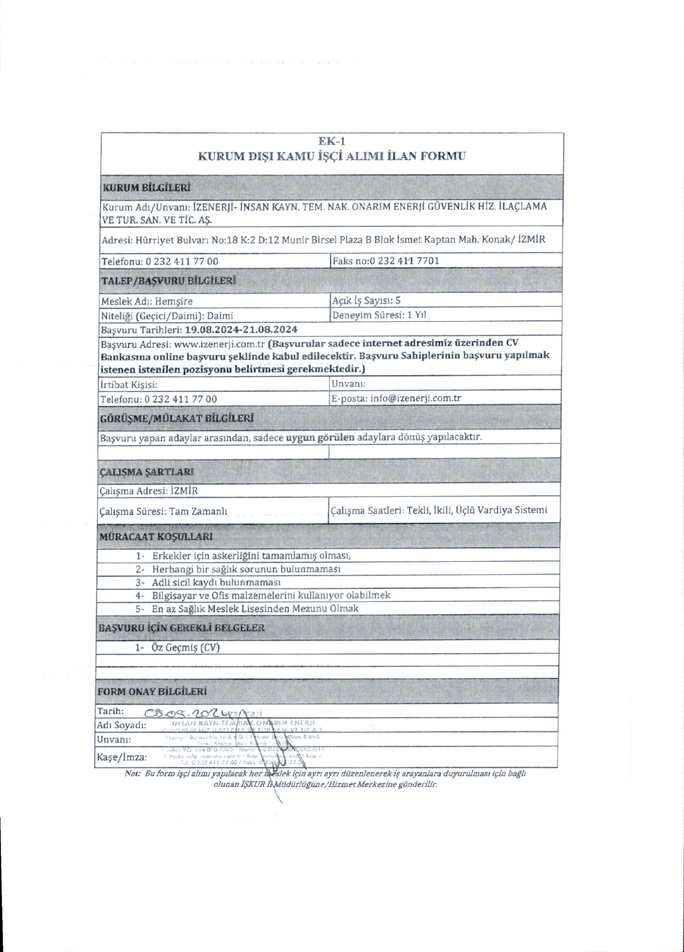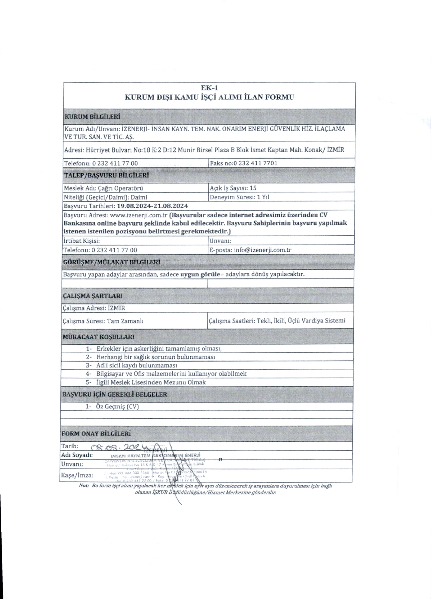 Ana sayfaDaimi İşçi İlanları İzmir İzenerji 274 İşçi Alacak İzmir İzenerji 274 İşçi Alacak. Son başvuru tarihi 21 ağustos 2024 Kaynak : işkur İlan Giriş : 08 Ağustos 2024 23:11, Son Güncelleme : 08 Ağustos 2024 23:38 Yazdır Yorumlar (0) Abone Ol <>Maaş robotuna ulaşmak için tıklayınız