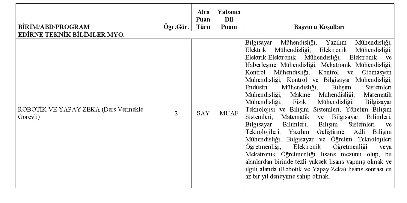 Trakya Üniversitesi Öğretim Elemanı Alım İlanı