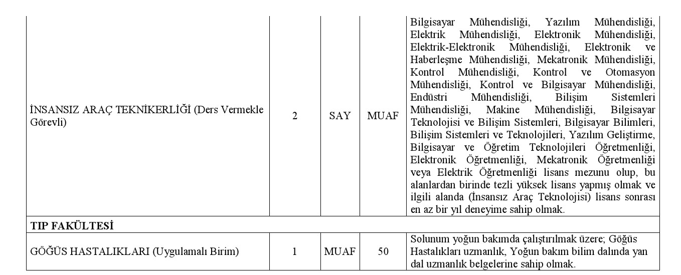 Üniversitemizin çeşitli birimlerine 2547 sayılı Yükseköğretim Kanunu ve "Öğretim Üyesi Dışındaki Öğretim Elemanı Kadrolarına Yapılacak Atamalarda Uygulanacak Merkezi Sınav ile Giriş Sınavlarına İlişkin Usul ve Esaslar Hakkında Yönetmelik'in ilgili maddelerine göre öğretim görevlisi alınacaktır. İlan edilen kadrolara başvuracak adayların Yönetmelik'teki genel ve özel şartlar ile ilanda belirtilen başvuru koşullarını sağlamaları gerekmektedir.