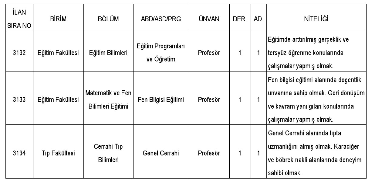 ÖĞRETİM ÜYESİ ALIM İLANI