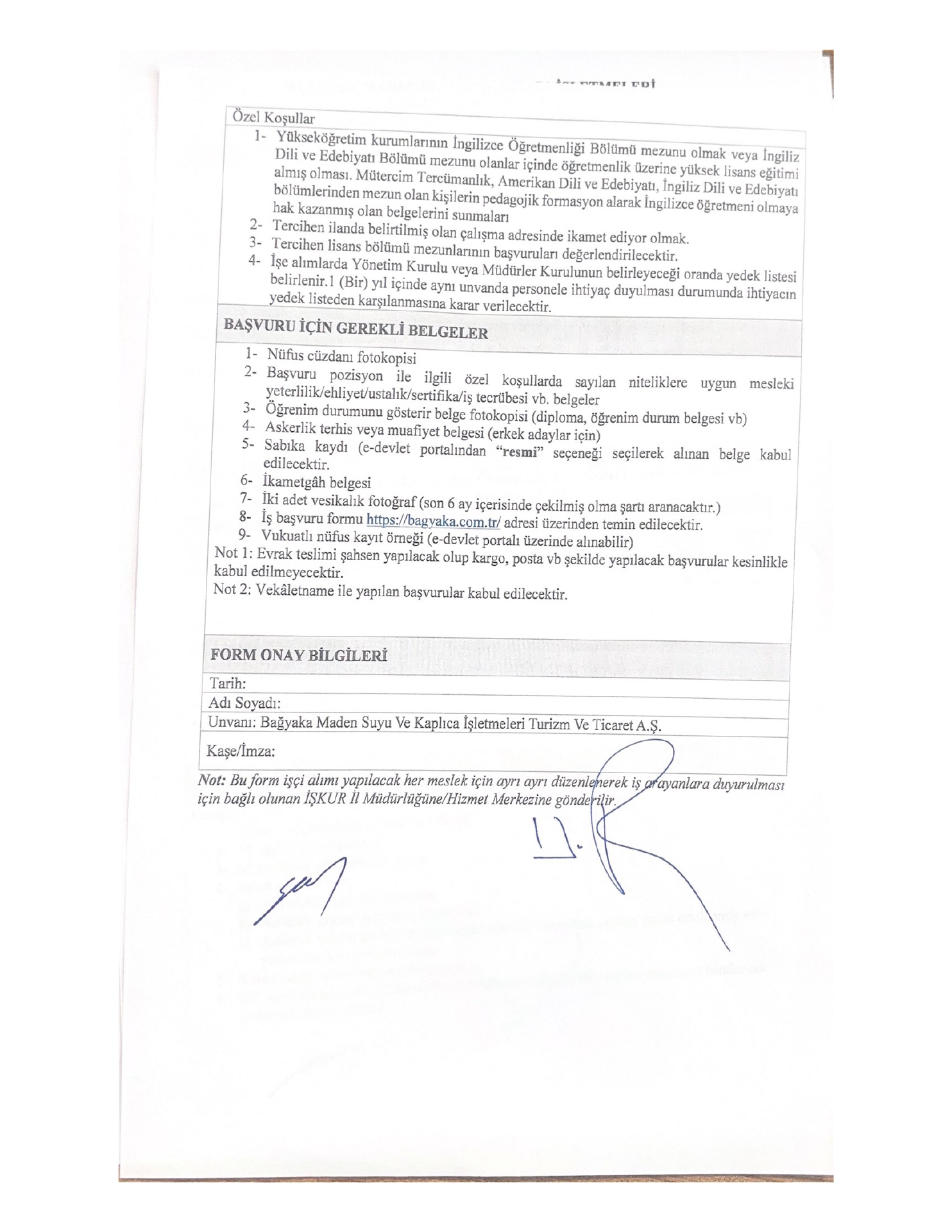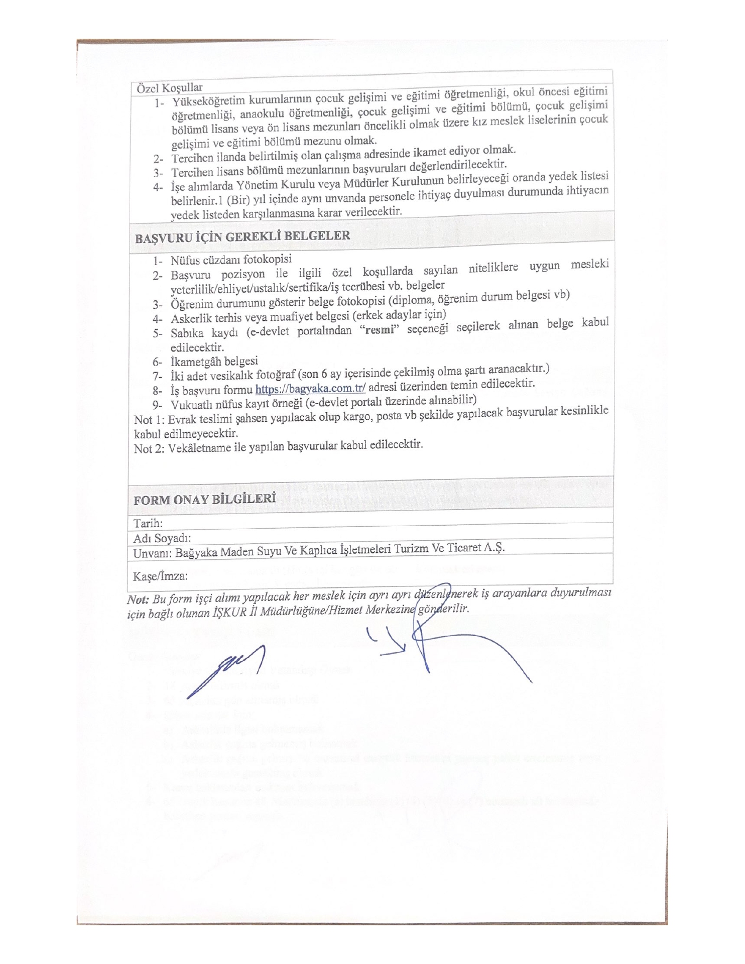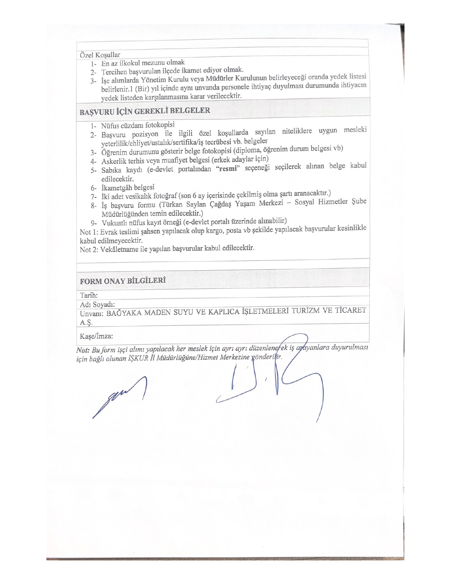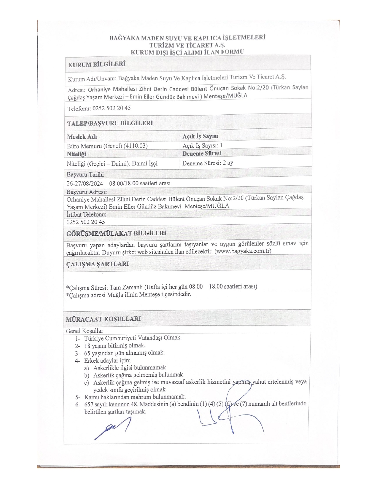 Muğla Bağyaka Maden Suyu ve Kaplıca İşletmeleri 10 İşçi Alacak. Son başvuru tarihi 27 ağustos 2024