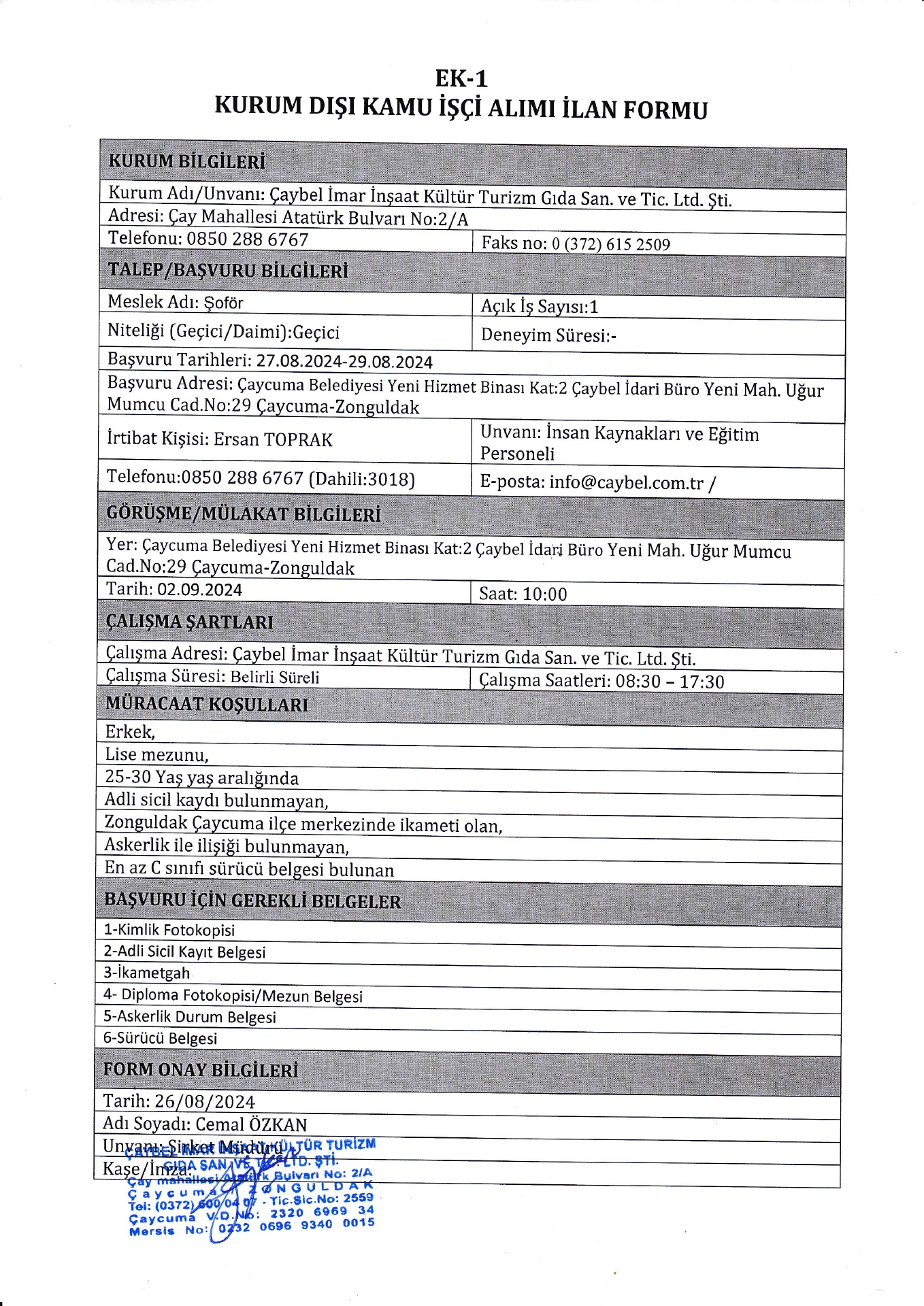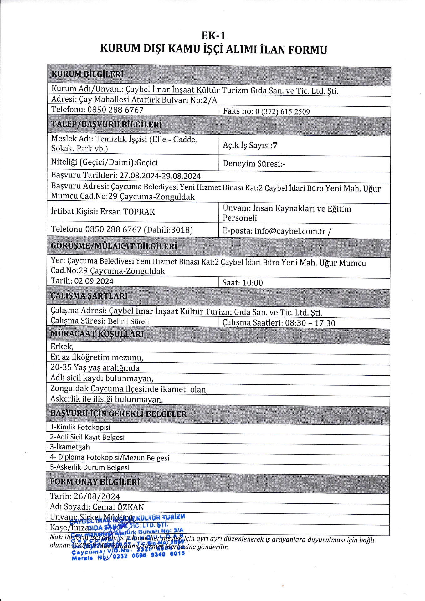 Ana sayfaGeçici İşçi İlanları Çaybel İmar Geçici 8 İşçi Alacak Çaybel İmar Geçici 8 İşçi Alacak. Son başvuru tarihi 29 ağustos 2024 Kaynak : işkur İlan Giriş : 26 Ağustos 2024 22:32, Son Güncelleme : 26 Ağustos 2024 23:24 Yazdır Yorumlar (0) Abone Ol <>Maaş robotuna ulaşmak için tıklayınız
