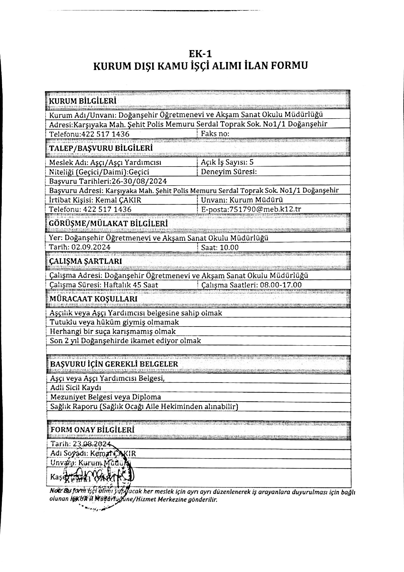 Ana sayfaGeçici İşçi İlanları Malatya Doğanşehir Öğretmenevi Geçici 5 İşçi Alacak Malatya Doğanşehir Öğretmenevi Geçici 5 İşçi Alacak. Son başvuru tarihi 30 ağustos 2024 Kaynak : işkur İlan Giriş : 26 Ağustos 2024 22:36, Son Güncelleme : 26 Ağustos 2024 23:19 Yazdır Yorumlar (0) Abone Ol <>Maaş robotuna ulaşmak için tıklayınız