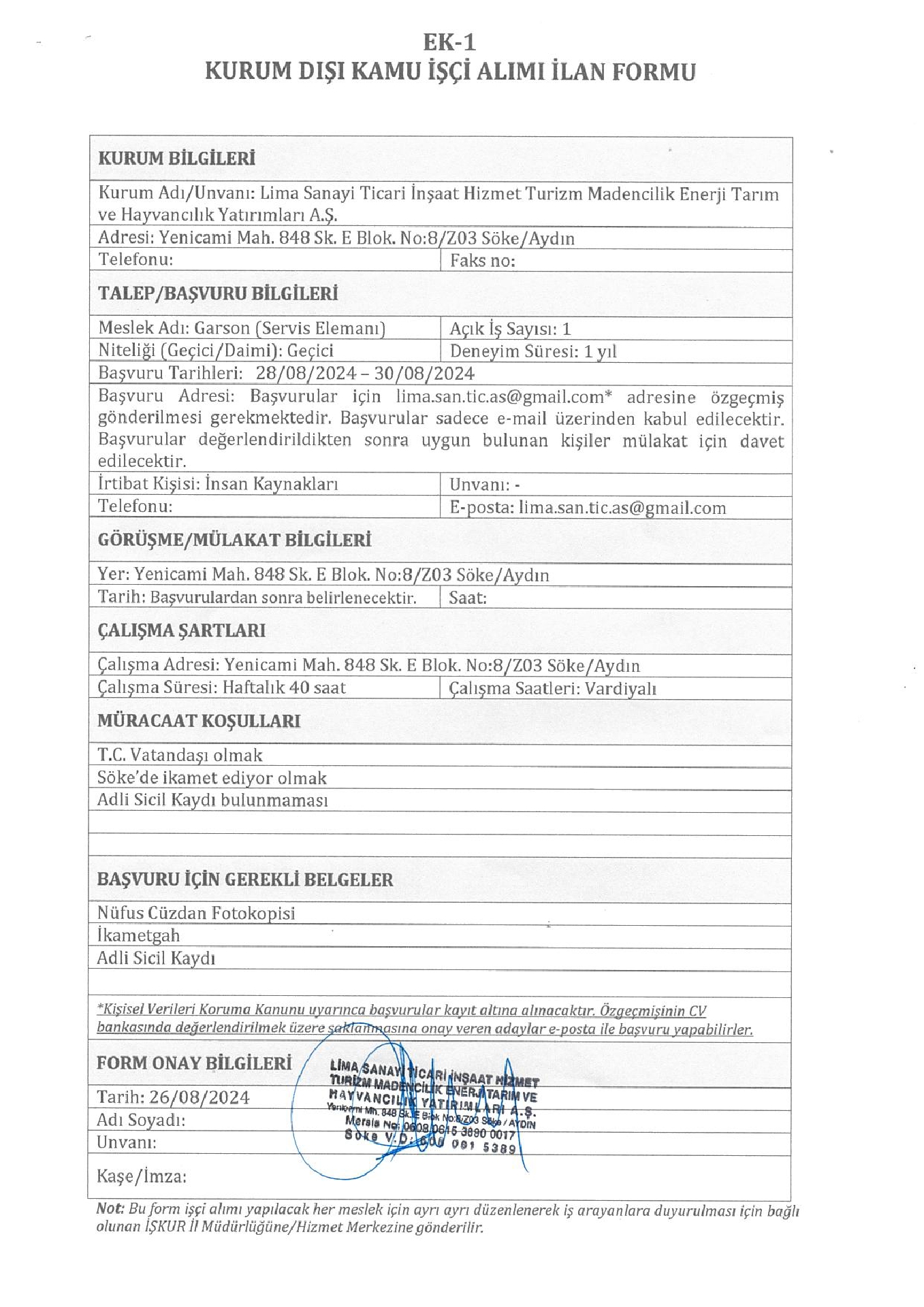 Ana sayfaGeçici İşçi İlanları Aydın Lima Sanayi Geçici 1 İşçi Alacak Aydın Lima Sanayi Geçici 1 İşçi Alacak. Son başvuru tarihi 30 ağustos 2024 Kaynak : işkur İlan Giriş : 26 Ağustos 2024 22:37, Son Güncelleme : 26 Ağustos 2024 23:17 Yazdır Yorumlar (0) Abone Ol <>Maaş robotuna ulaşmak için tıklayınız