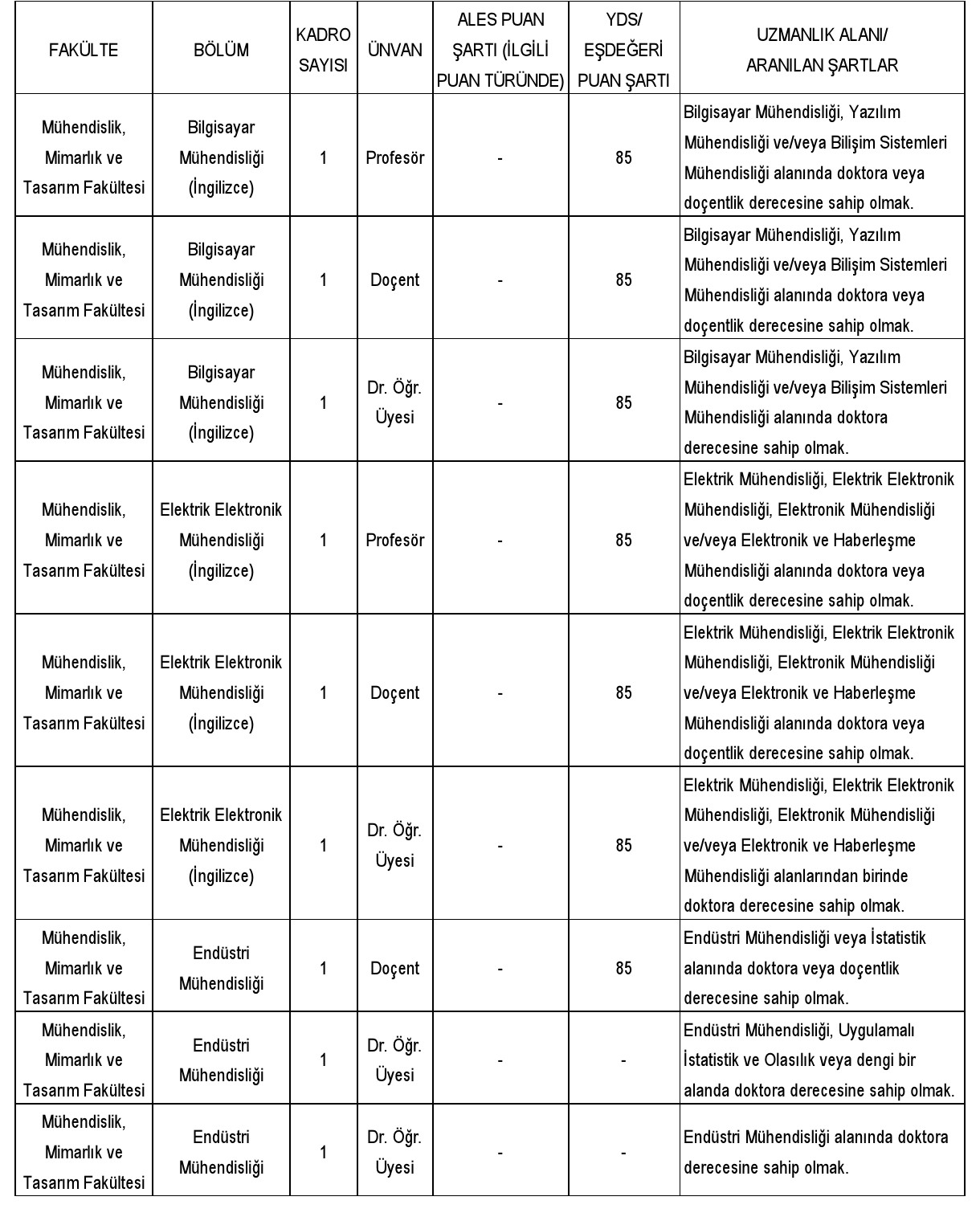Profesör / Doçent / Doktor Öğretim Üyesi Kadroları İçin
