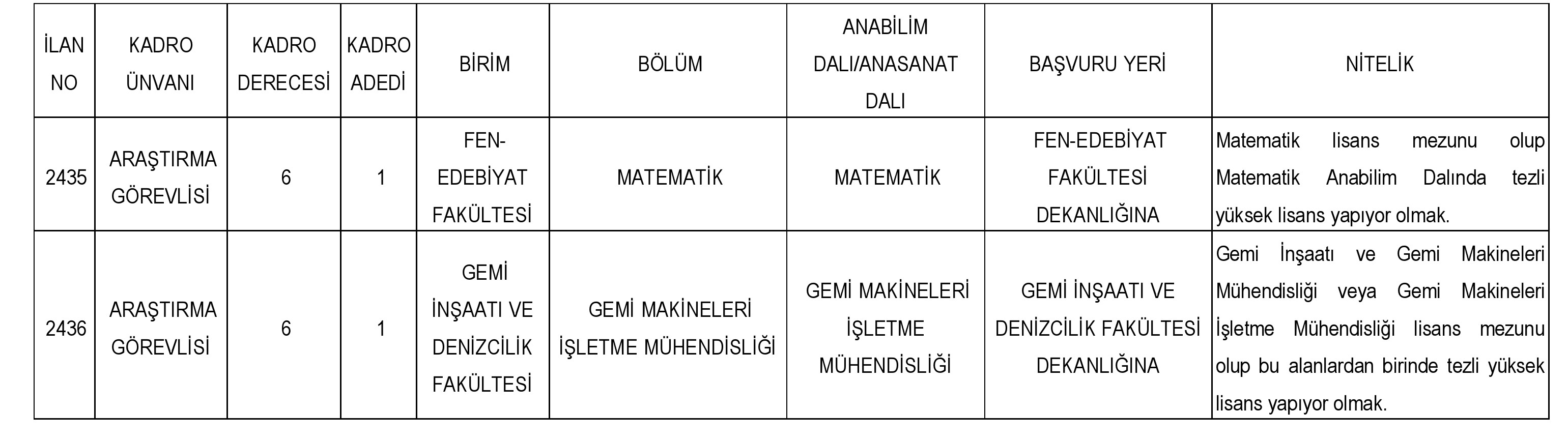 Araştırma görevlisi kadrosuna atamalar 2547 sayılı Yükseköğretim Kanunun 50/d maddesi uyarınca yapılacaktır. Aşağıda belirtilen durumda bulunan adaylar ilana başvuru yapamazlar.