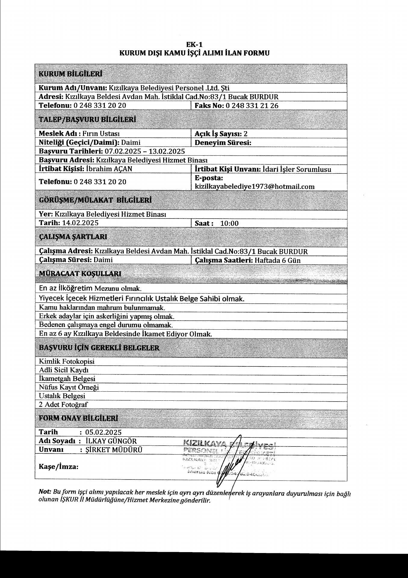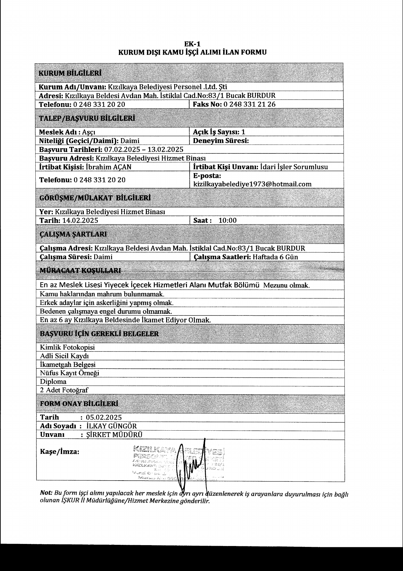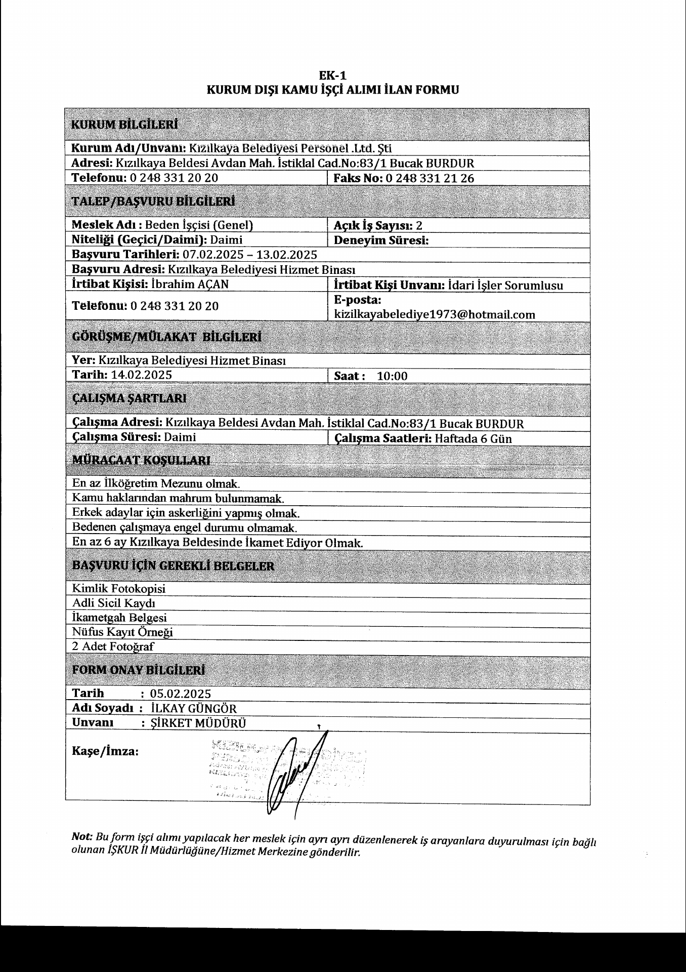 İlan Giriş : 06 Şubat 2025 00:13, Son Güncelleme : 06 Şubat 2025 00:43