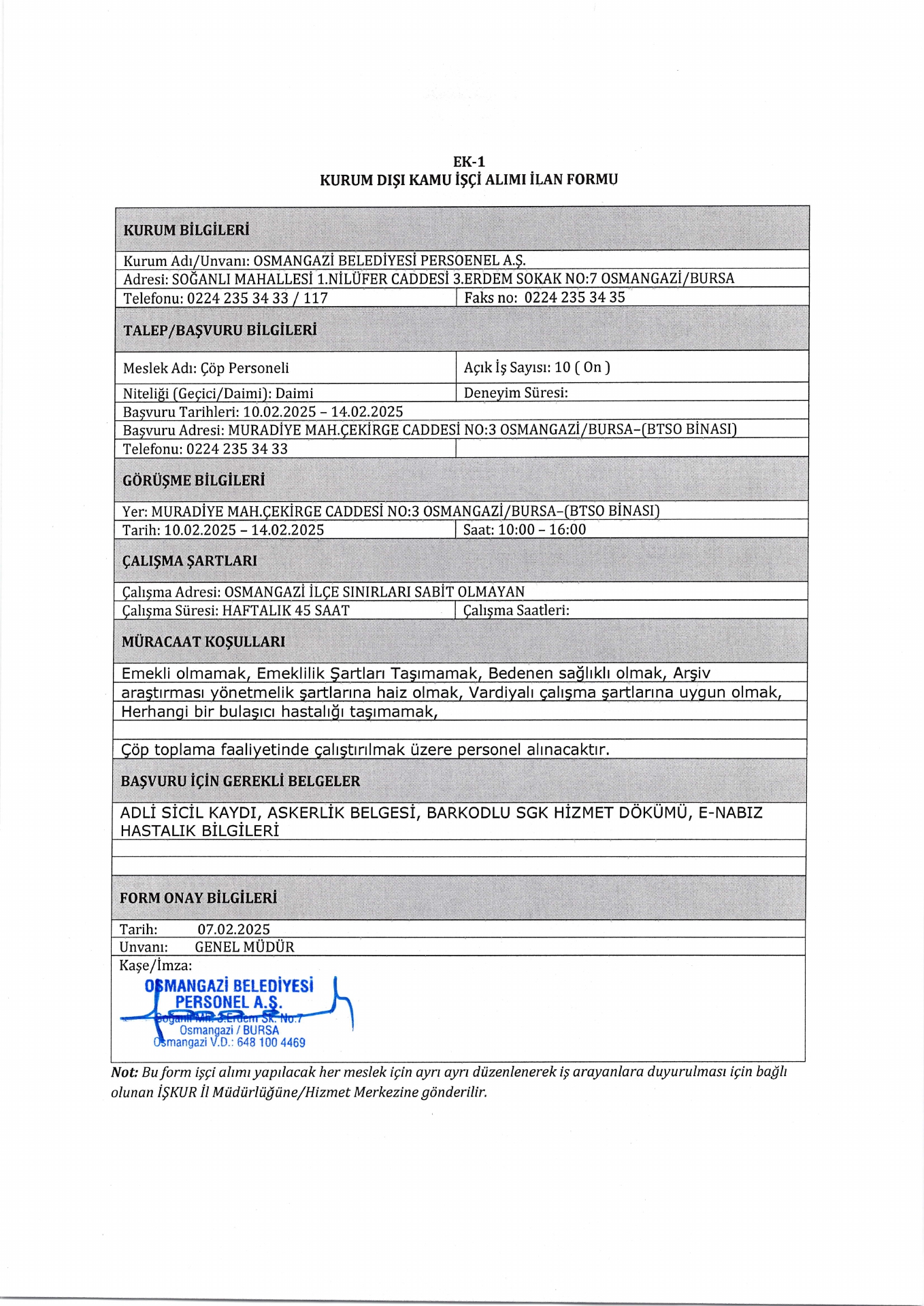 Bursa Osmangazi Belediyesi 10 İşçi Alacak. Son başvuru tarihi 14 şubat 2025