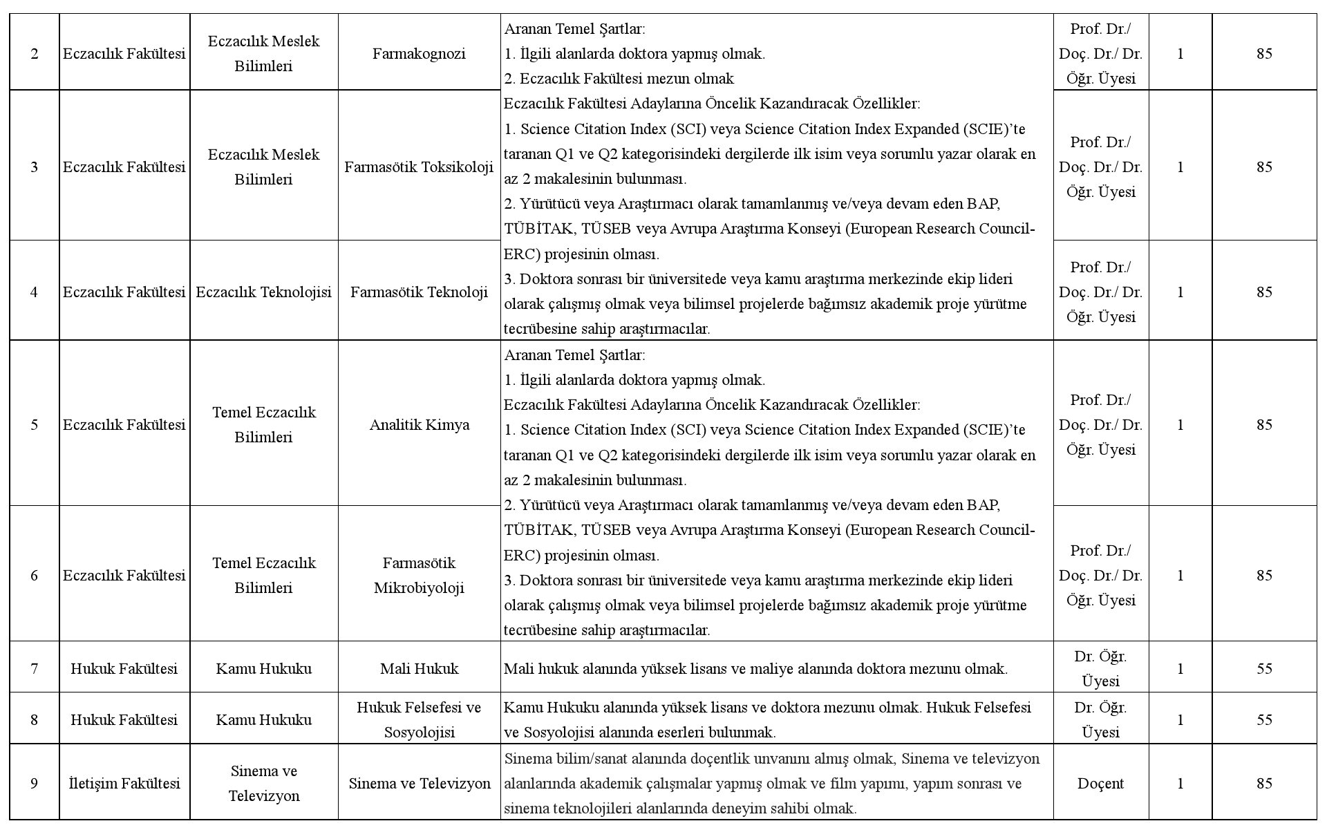3. Yukarıda belirtilen koşullara ek olarak başvurulan kadroya ilişkin özel koşullar açıklama sütununda belirtilmiştir.