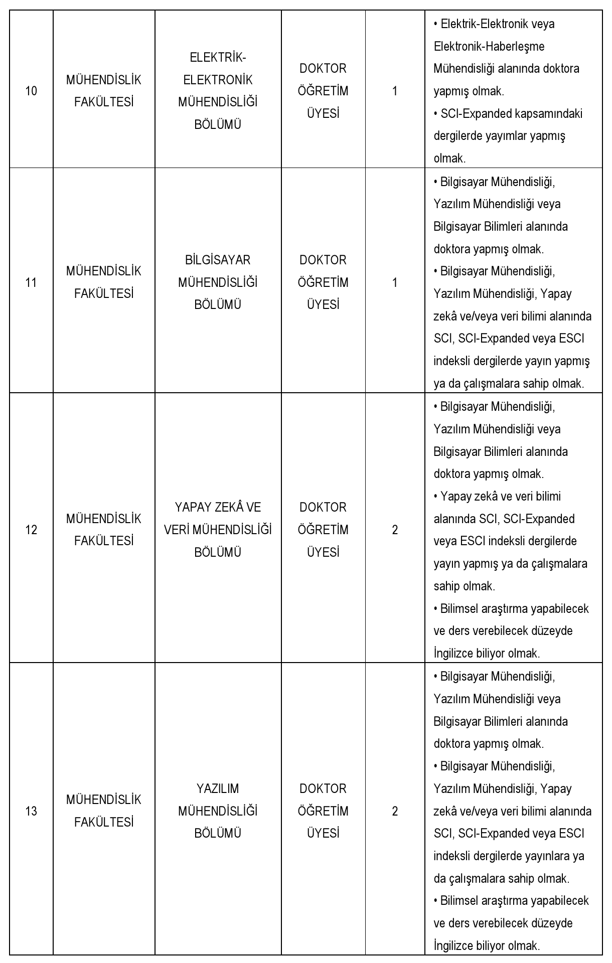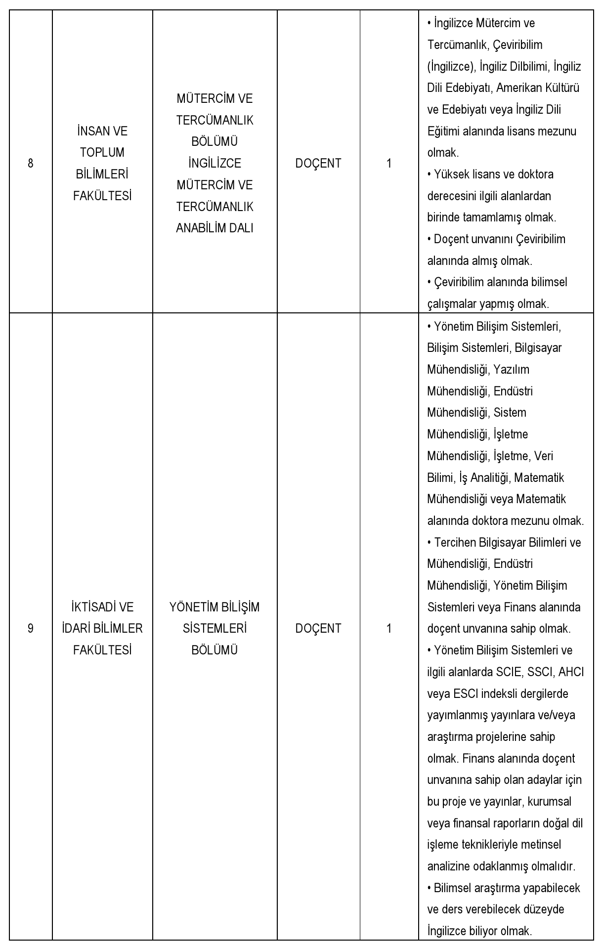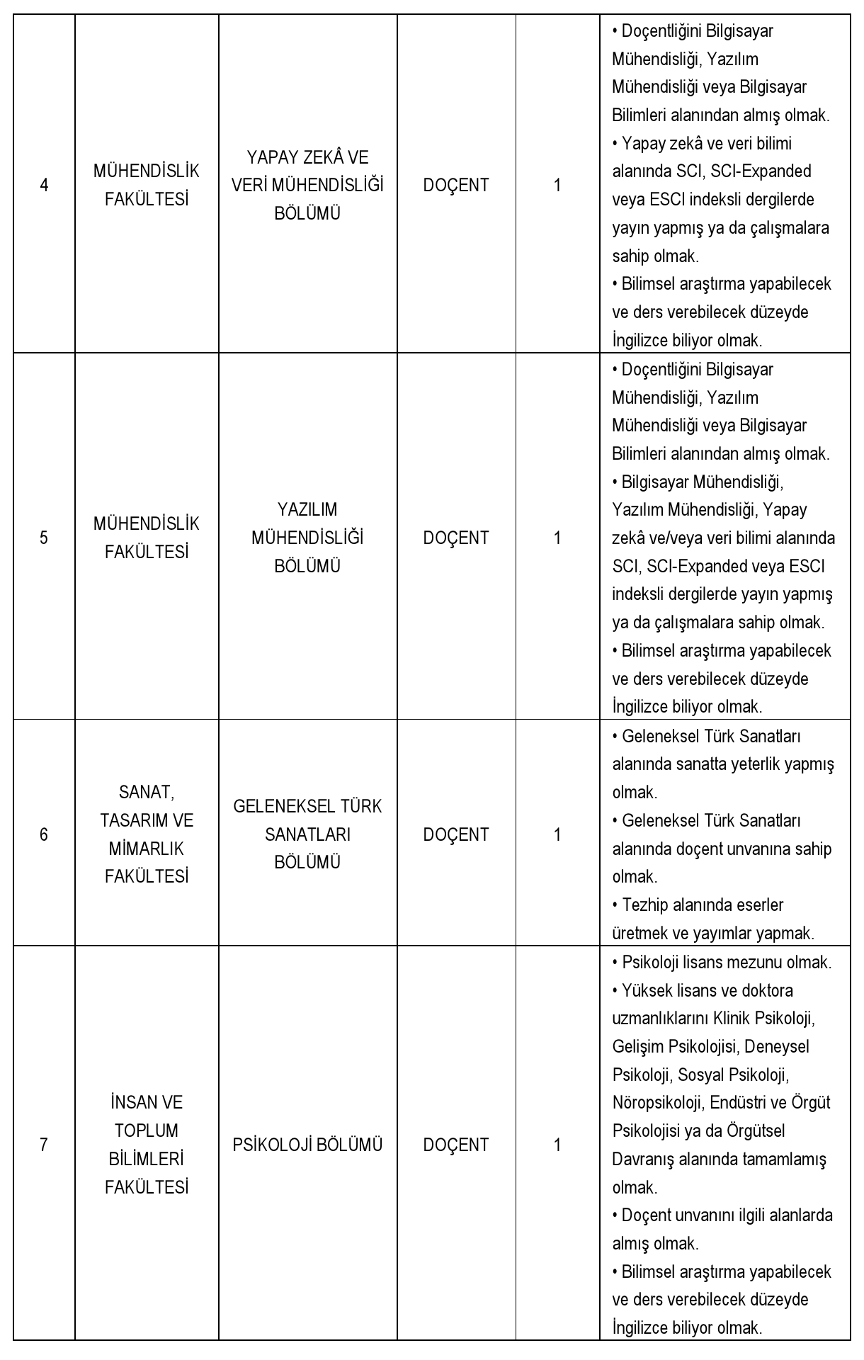 Üniversitemiz aşağıda belirtilen birimlere 2547 sayılı Kanun'un 23., 24. ve 26. maddeleri ile 28.01.1982 tarihli Resmi Gazete'de yayınlanan Öğretim Üyeliğine Yükseltilme ve Atanma Yönetmeliği'nin yürürlükteki ilgili maddeleri ve Fatih Sultan Mehmet Vakıf Üniversitesi Öğretim Üyeliğine Yükseltilme ve Atanma Yönergesi'ne göre öğretim üyesi alacaktır.