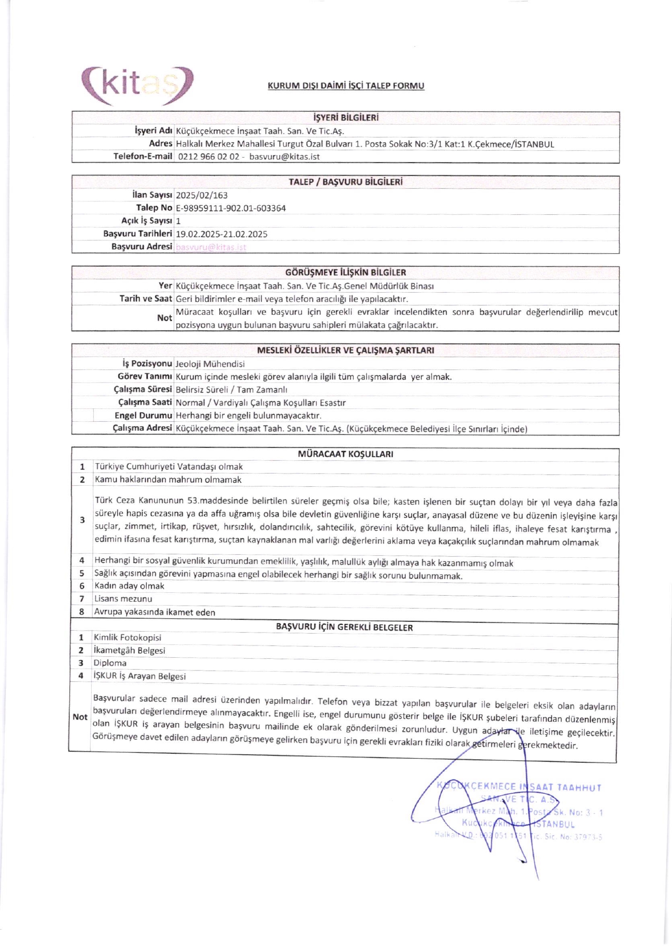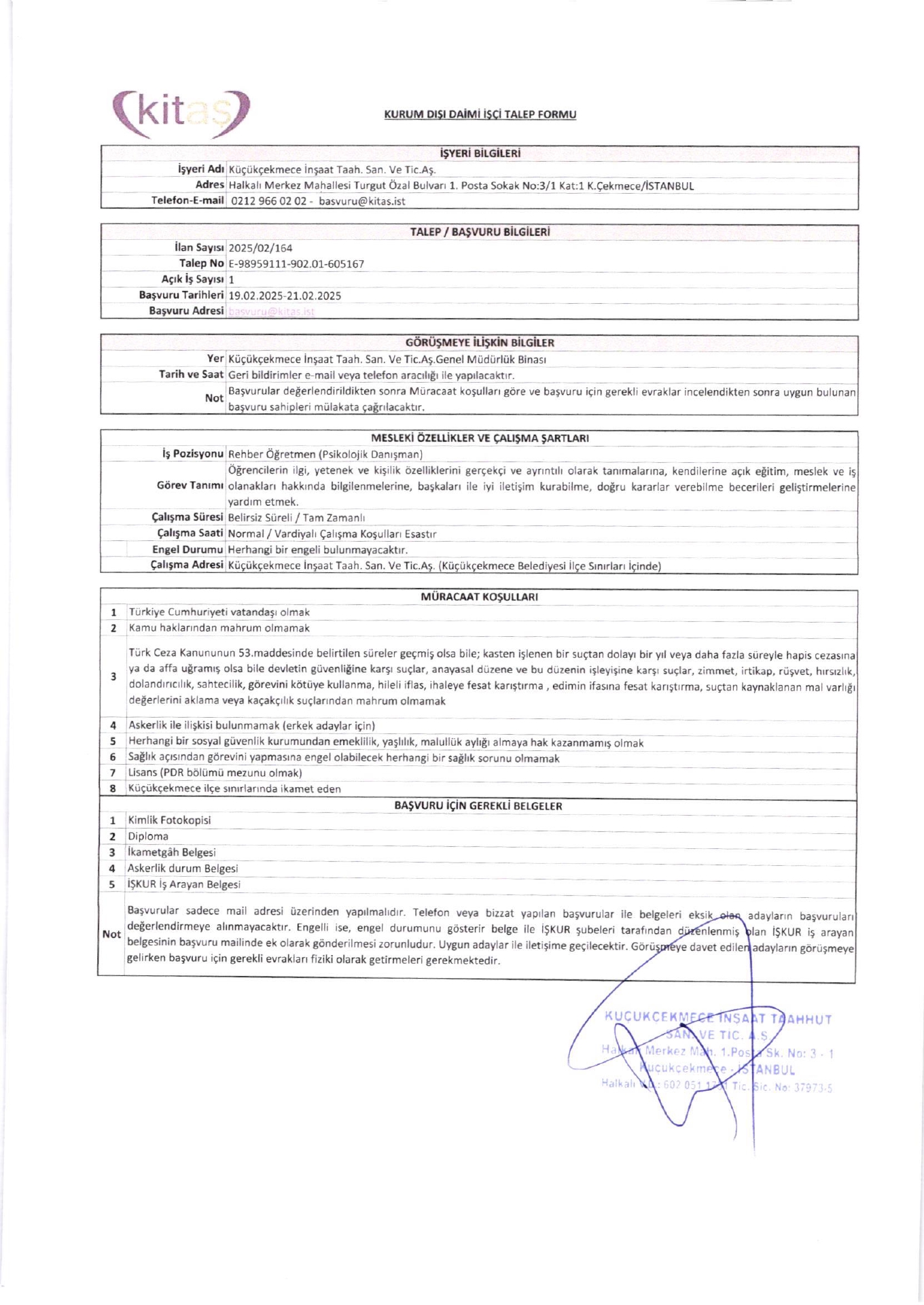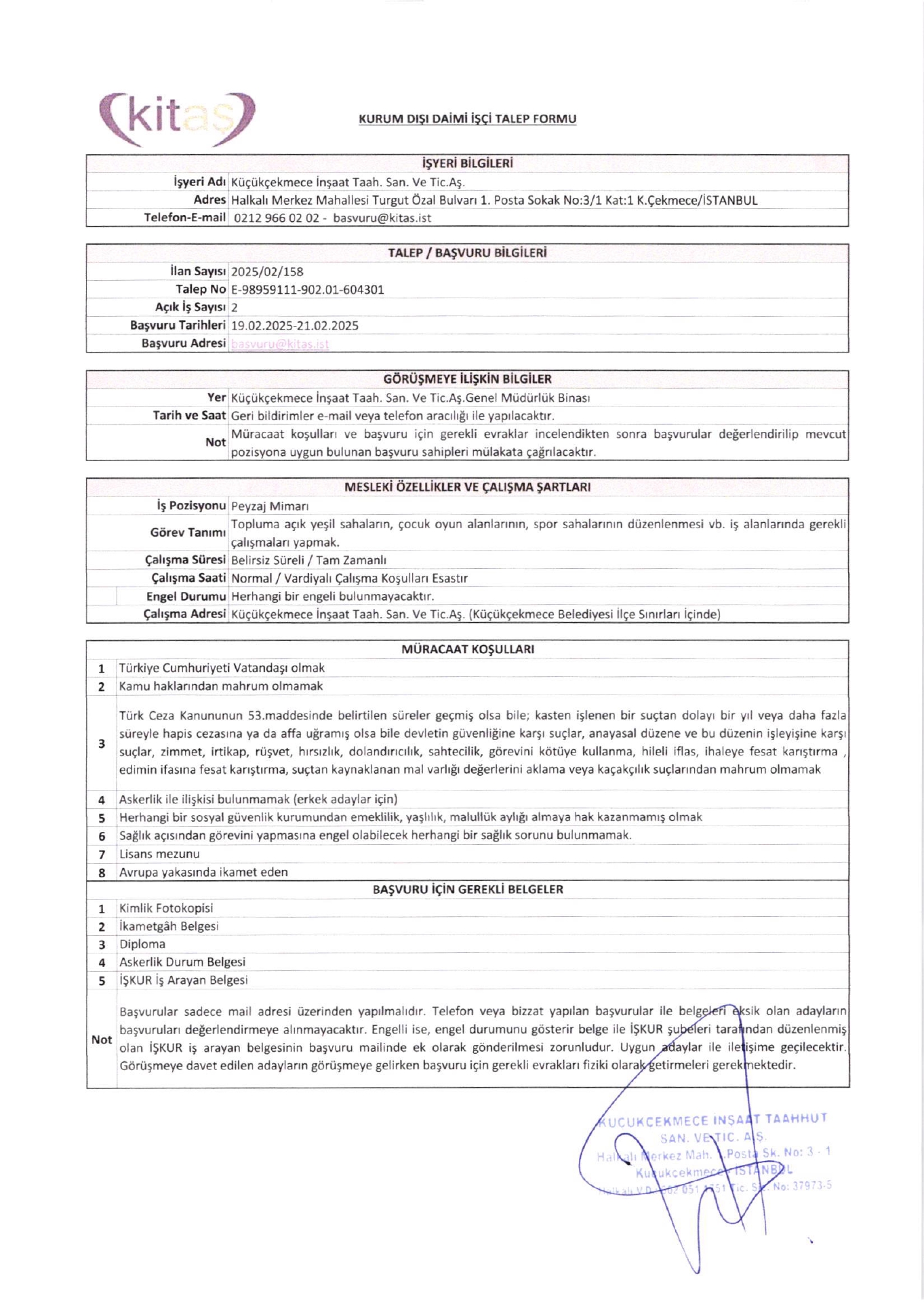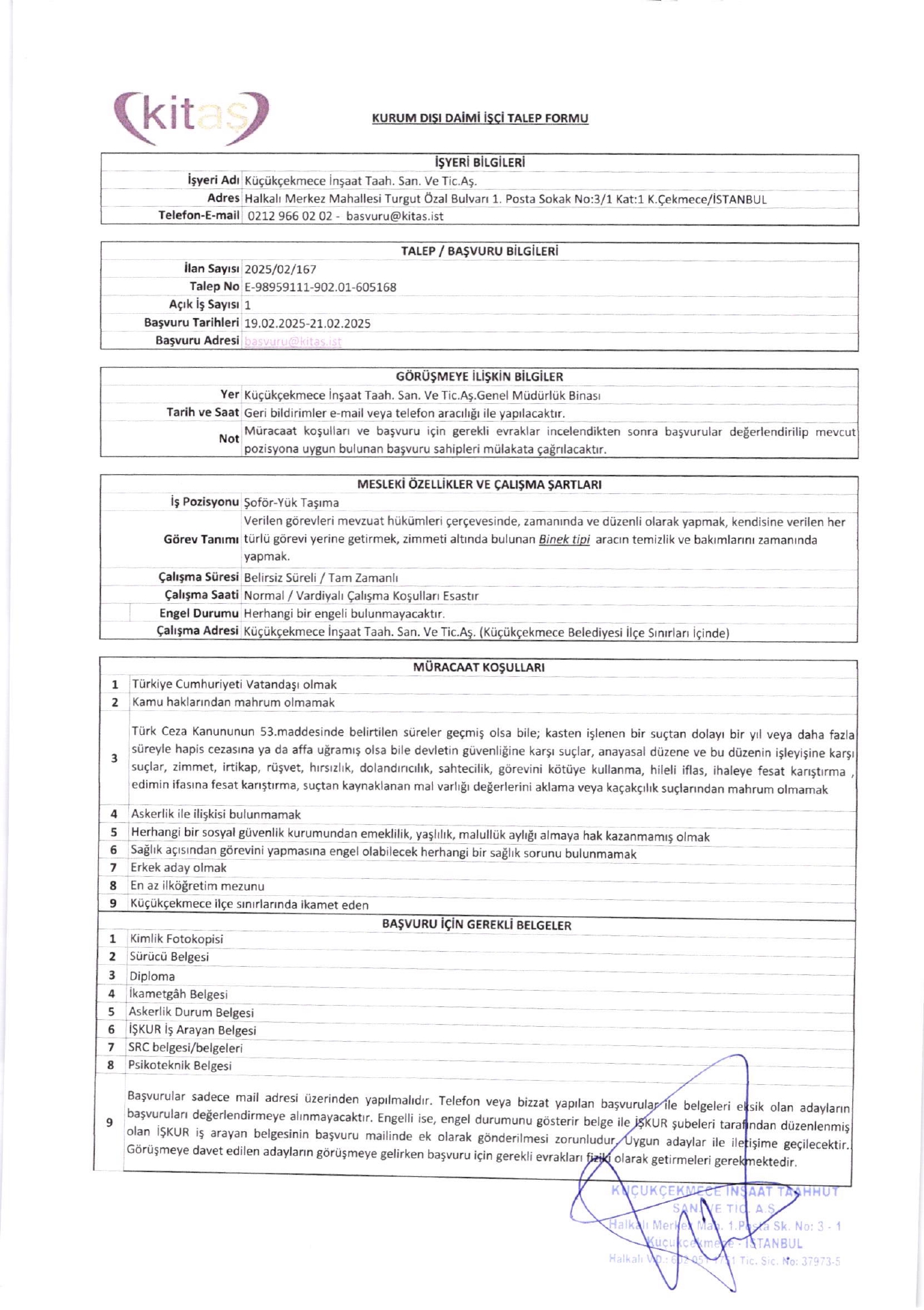 İstanbul Küçükçekmece İnşaat 14 İşçi Alacak. Son başvuru tarihi 21 şubat 2025