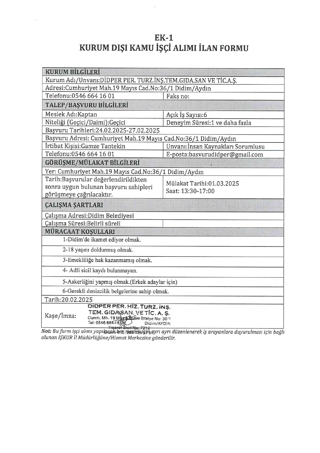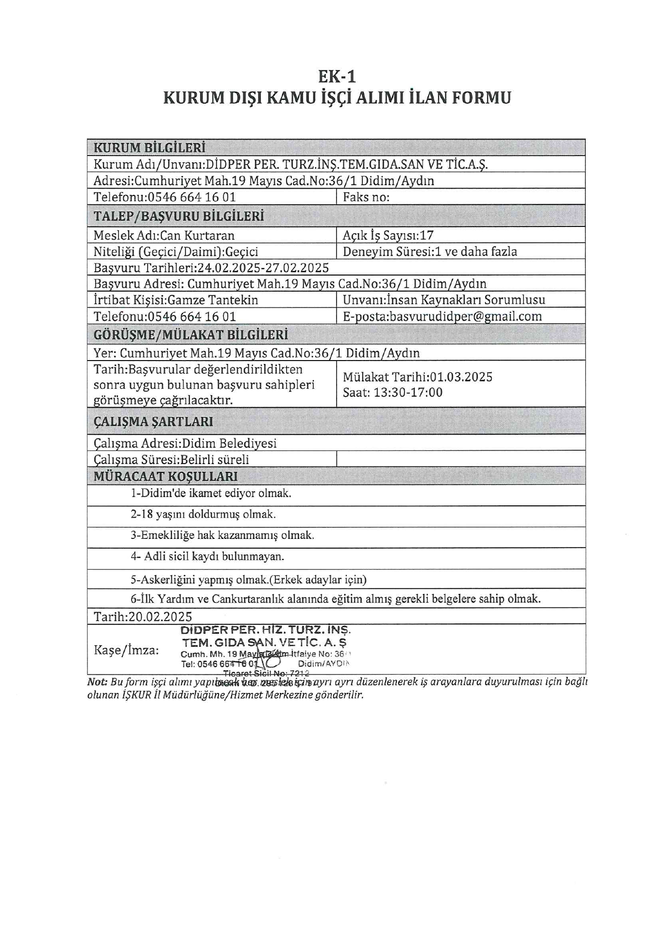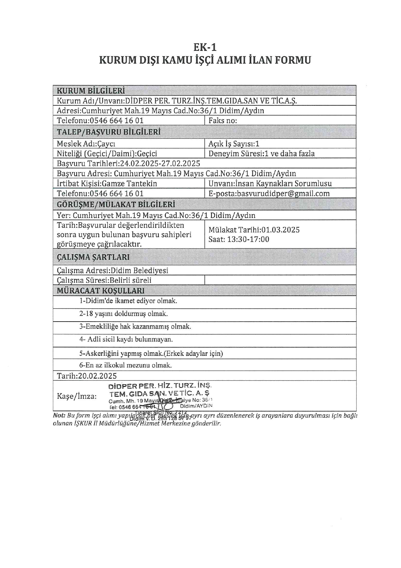 Aydın Didper Geçici 46 İşçi Alacak. Son başvuru tarihi 27 şubat 2025