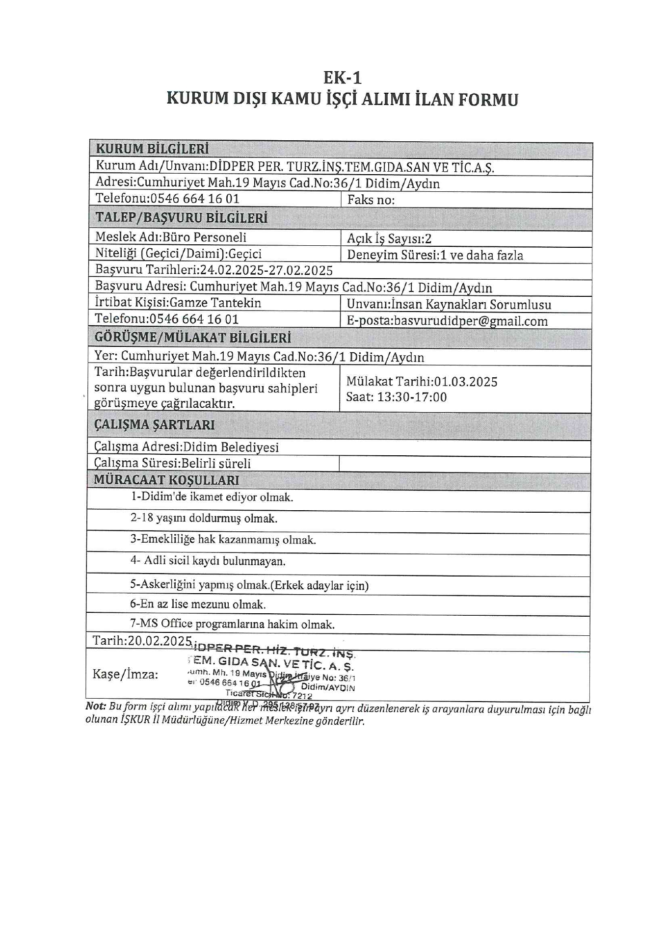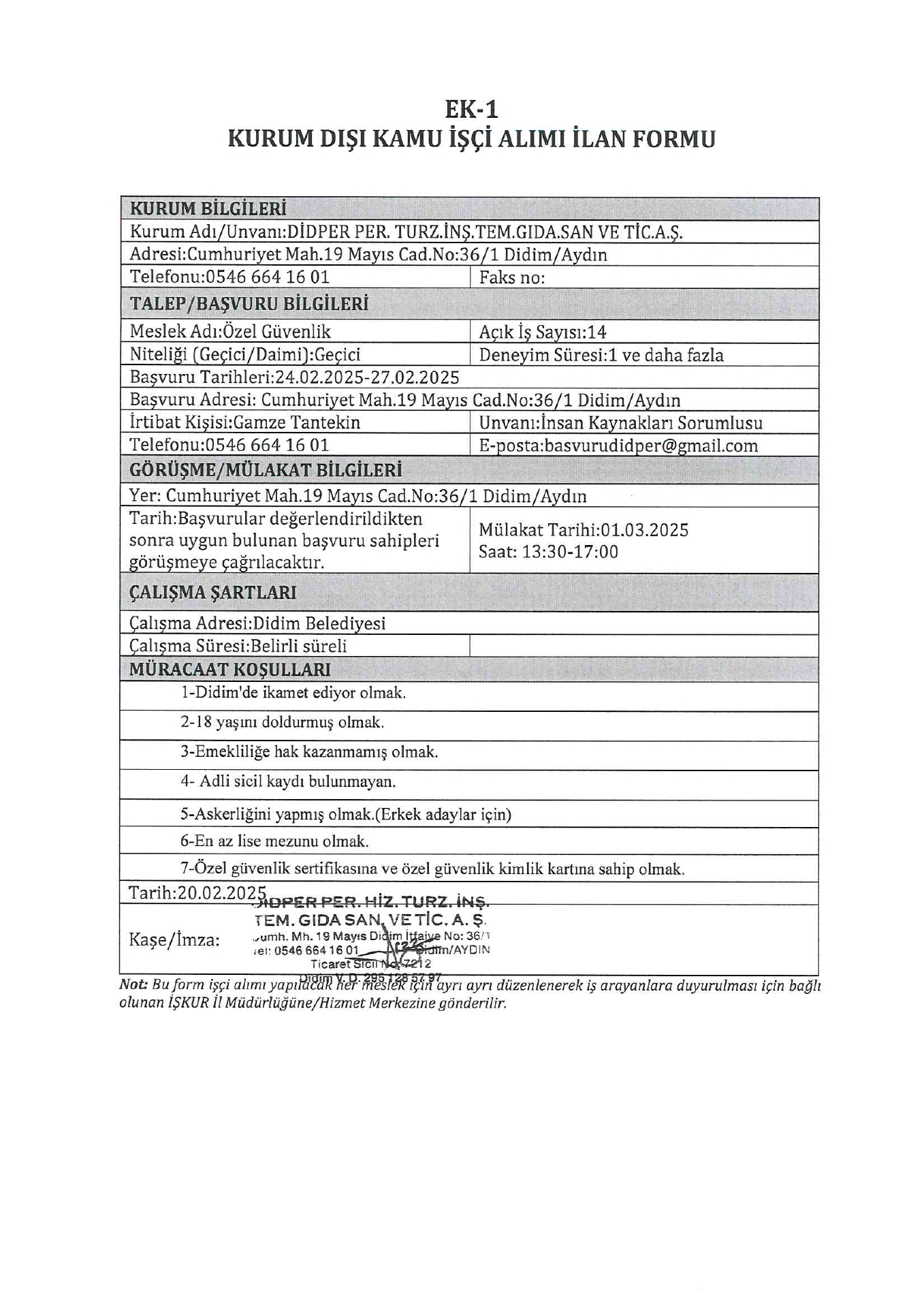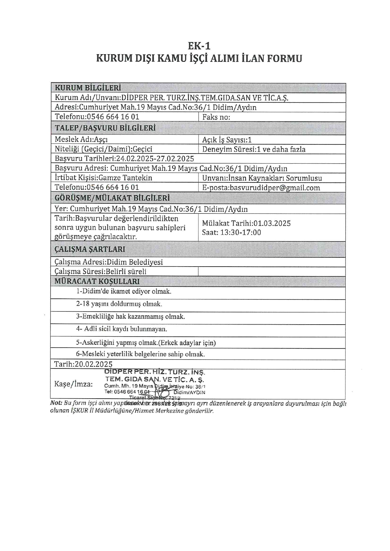 Aydın Didper Geçici 46 İşçi Alacak. Son başvuru tarihi 27 şubat 2025