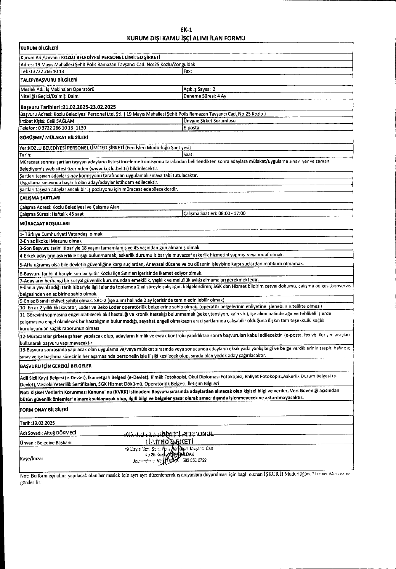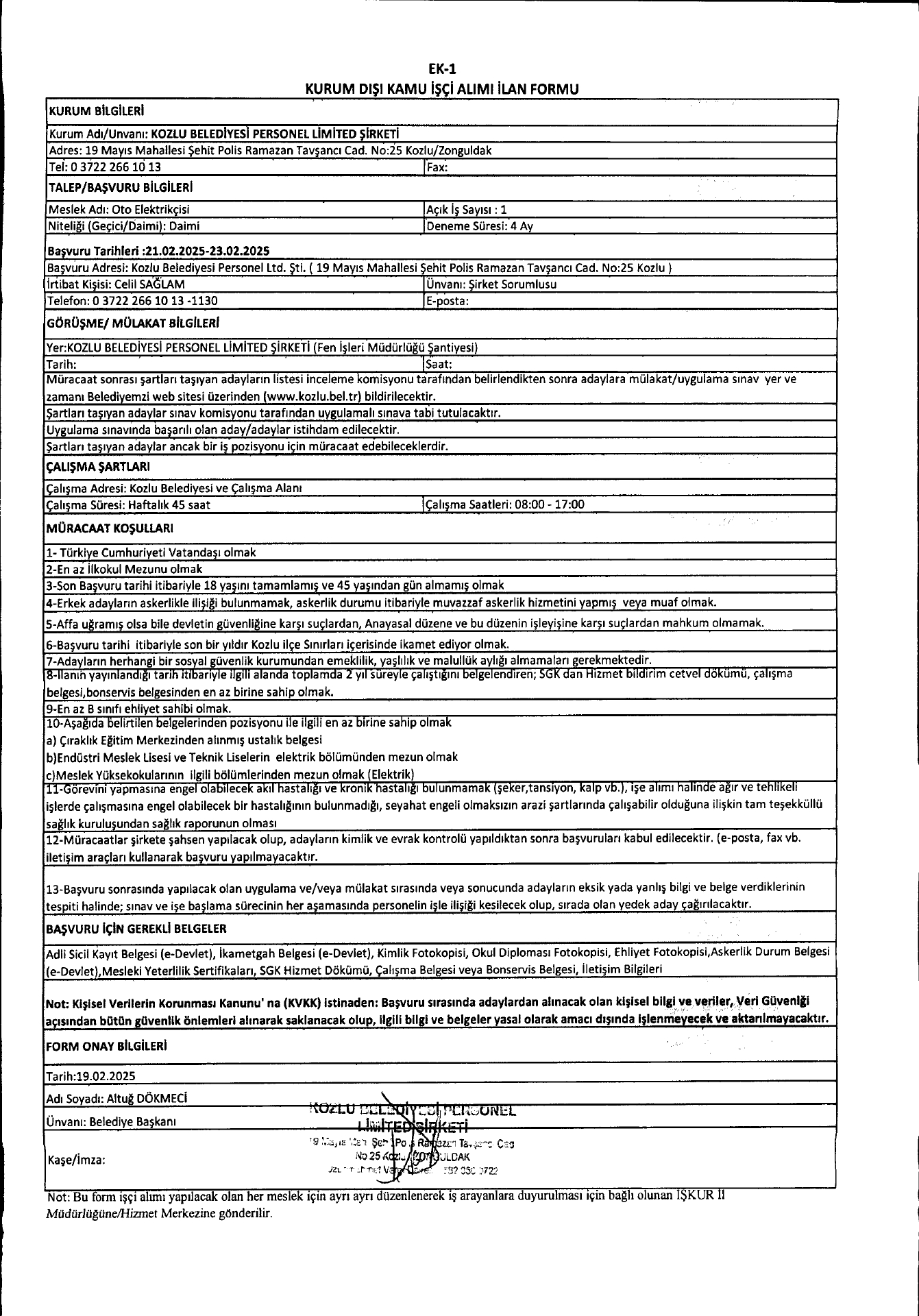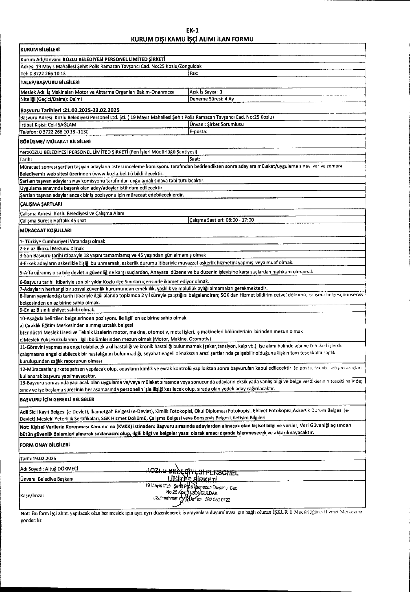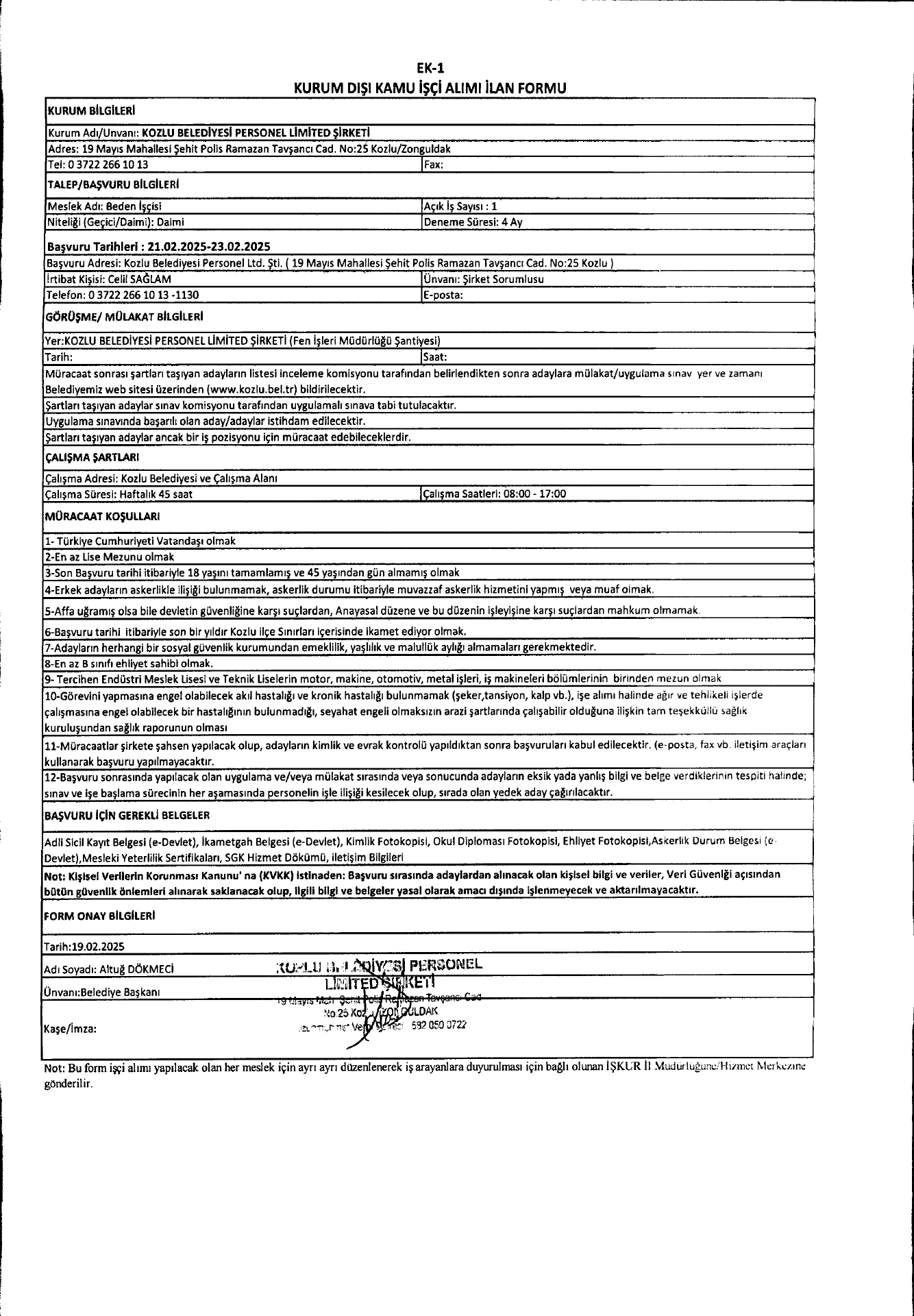 Zonguldak Kozlu Belediyesi 4 İşçi Alacak. Son başvuru tarihi 23 şubat 2025