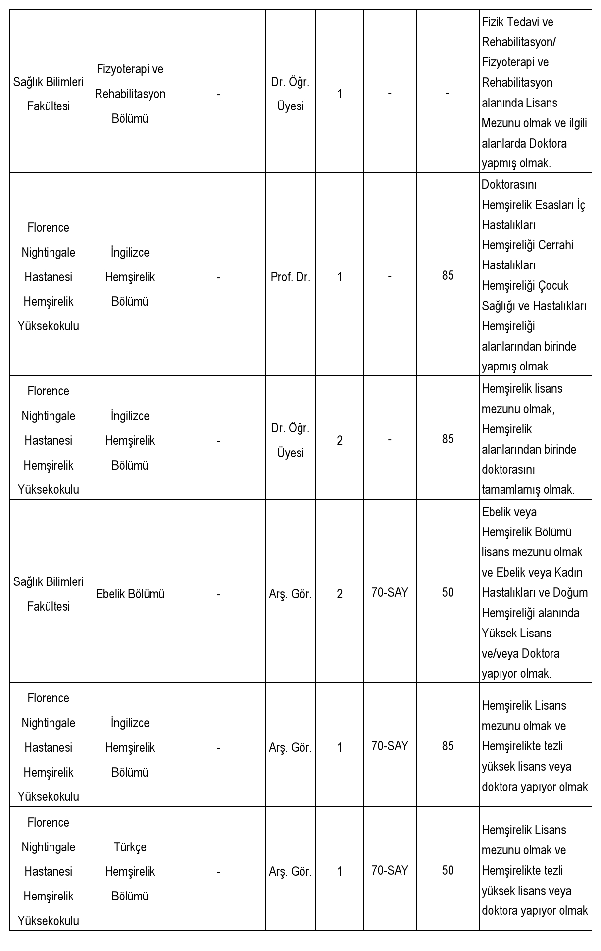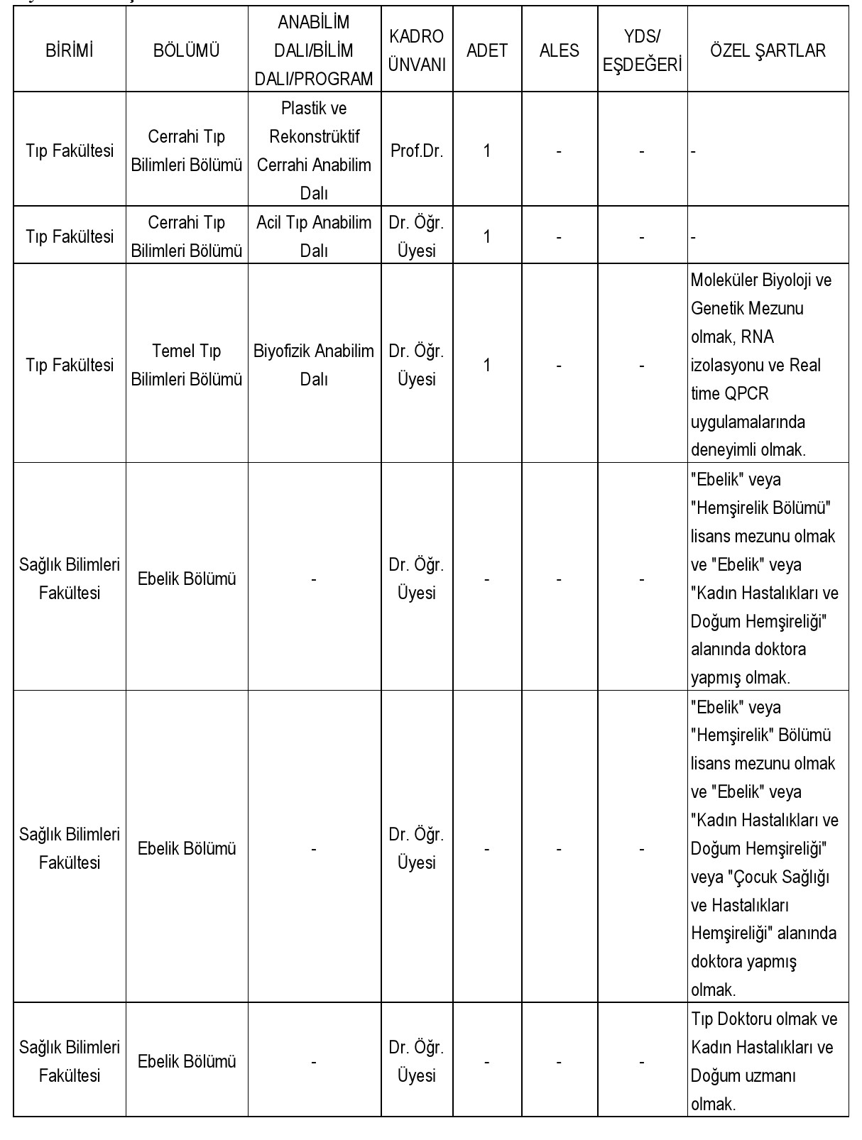 Üniversitemizin aşağıda belirtilen birimlerine 2547 sayılı Yükseköğretim Kanunu ile Öğretim Üyeliğine Yükseltilme ve Atanma Yönetmeliğinin ilgili maddeleri uyarınca, Üniversitemiz Öğretim Üyeliğine Yükseltme ve Atama Kriterlerini sağlamış olmak koşuluyla Öğretim Üyeleri ve Öğretim Üyesi dışındaki Öğretim Elemanı Kadrolarına Yapılacak Atamalarda Uygulanacak Merkezi Sınav ile Giriş Sınavlarına İlişkin Usul ve Esaslar Hakkında Yönetmelik Uyarınca Araştırma Görevlisi alınacaktır.