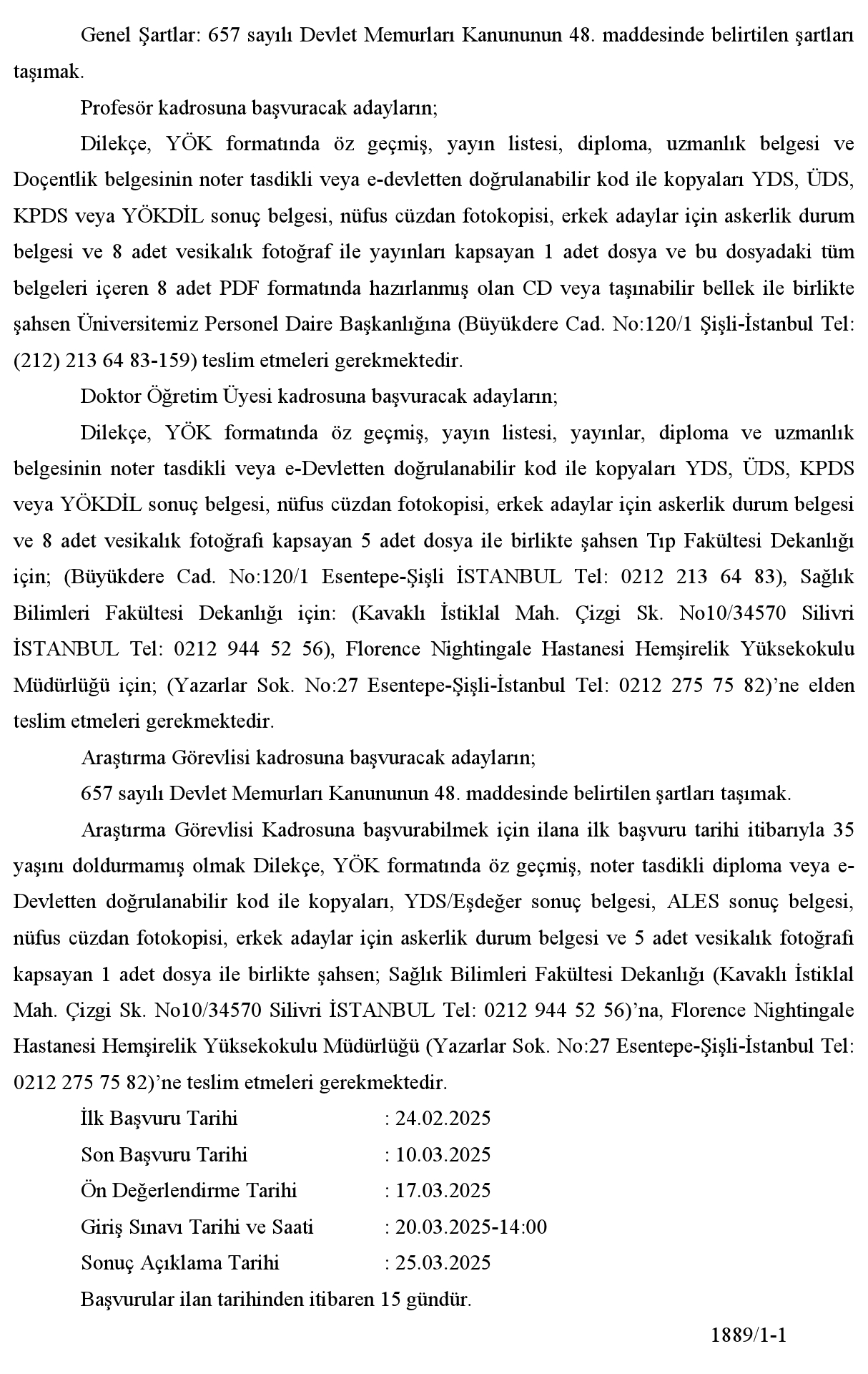 Demiroğlu Bilim Üniversitesi, Öğretim Üyesi, ve Elemanı, Alım İlanı. Son başvuru tarihi 10 mart 2025
