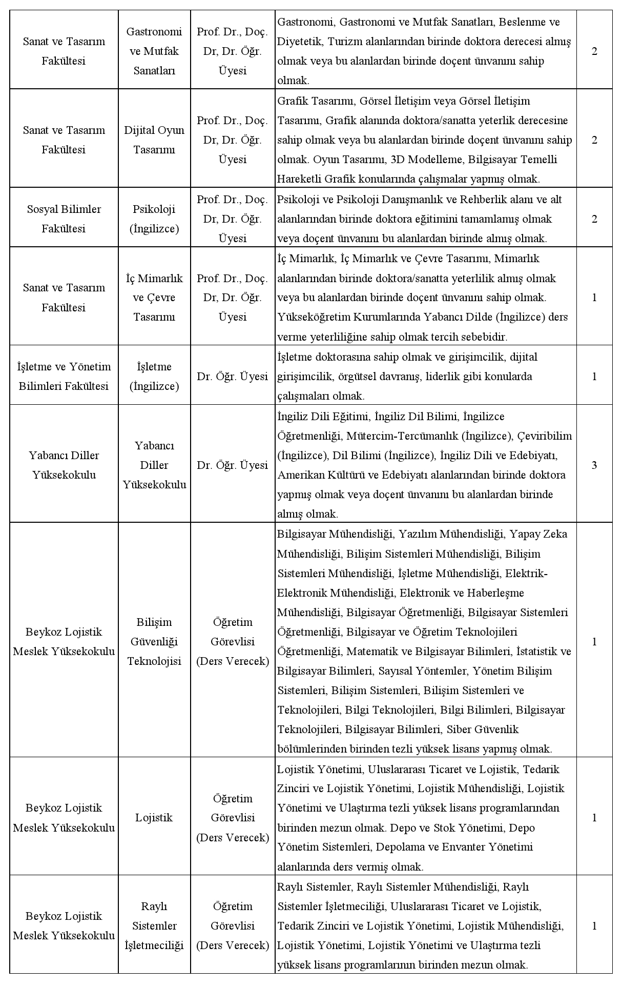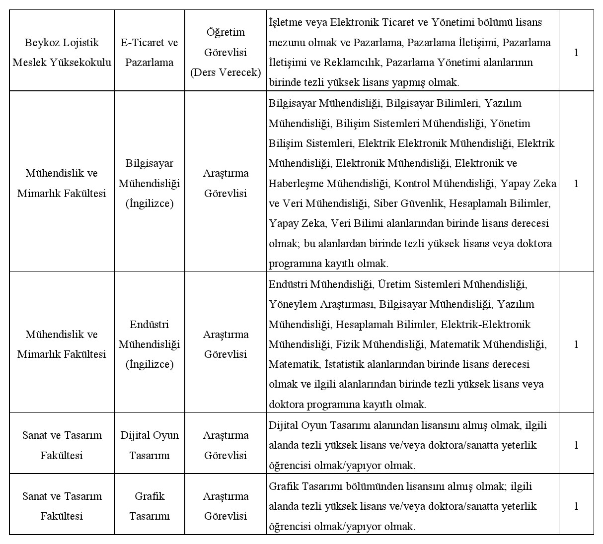 Beykoz Üniversitesi, Öğretim Üyesi, ve Elemanı, Alım İlanı. Son başvuru tarihi 13 mart 2025