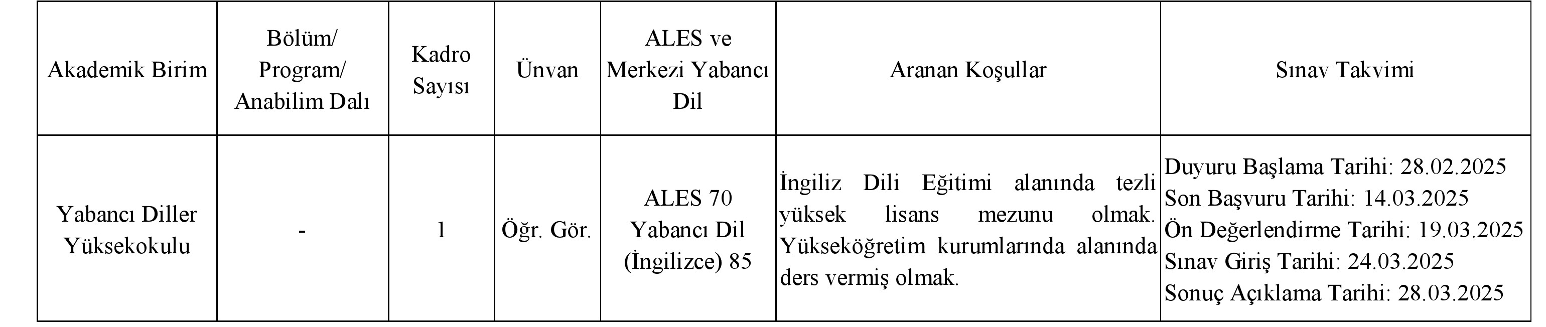ÖĞRETİM ELEMANI ALIM İLANI