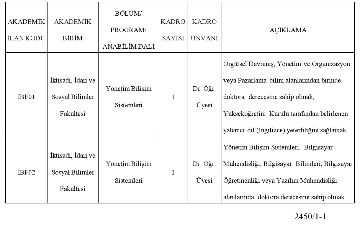 ÖĞRETİM ÜYESİ ALIM İLANI