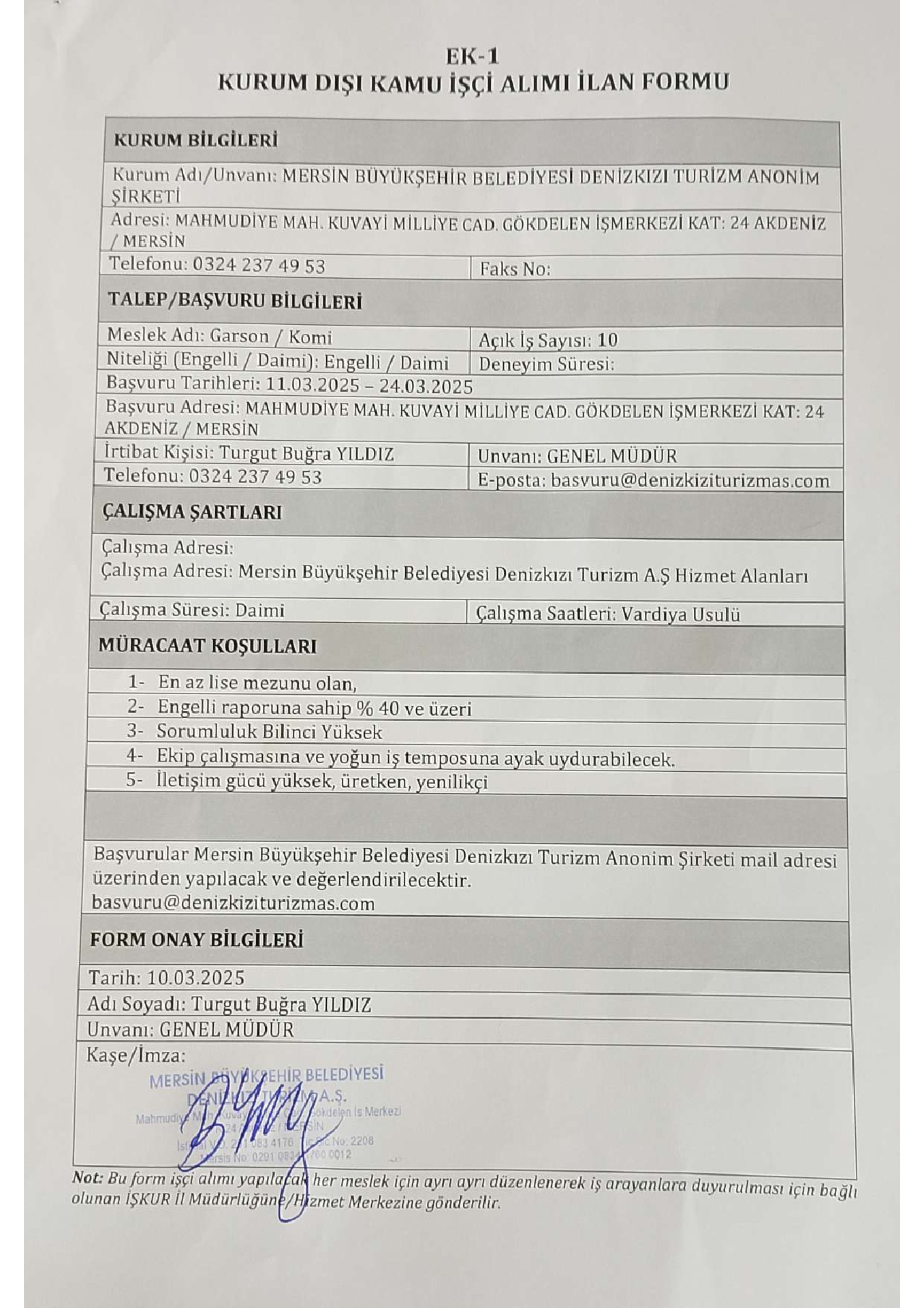 İlan Giriş : 12 Mart 2025 00:58, Son Güncelleme : 12 Mart 2025 01:23