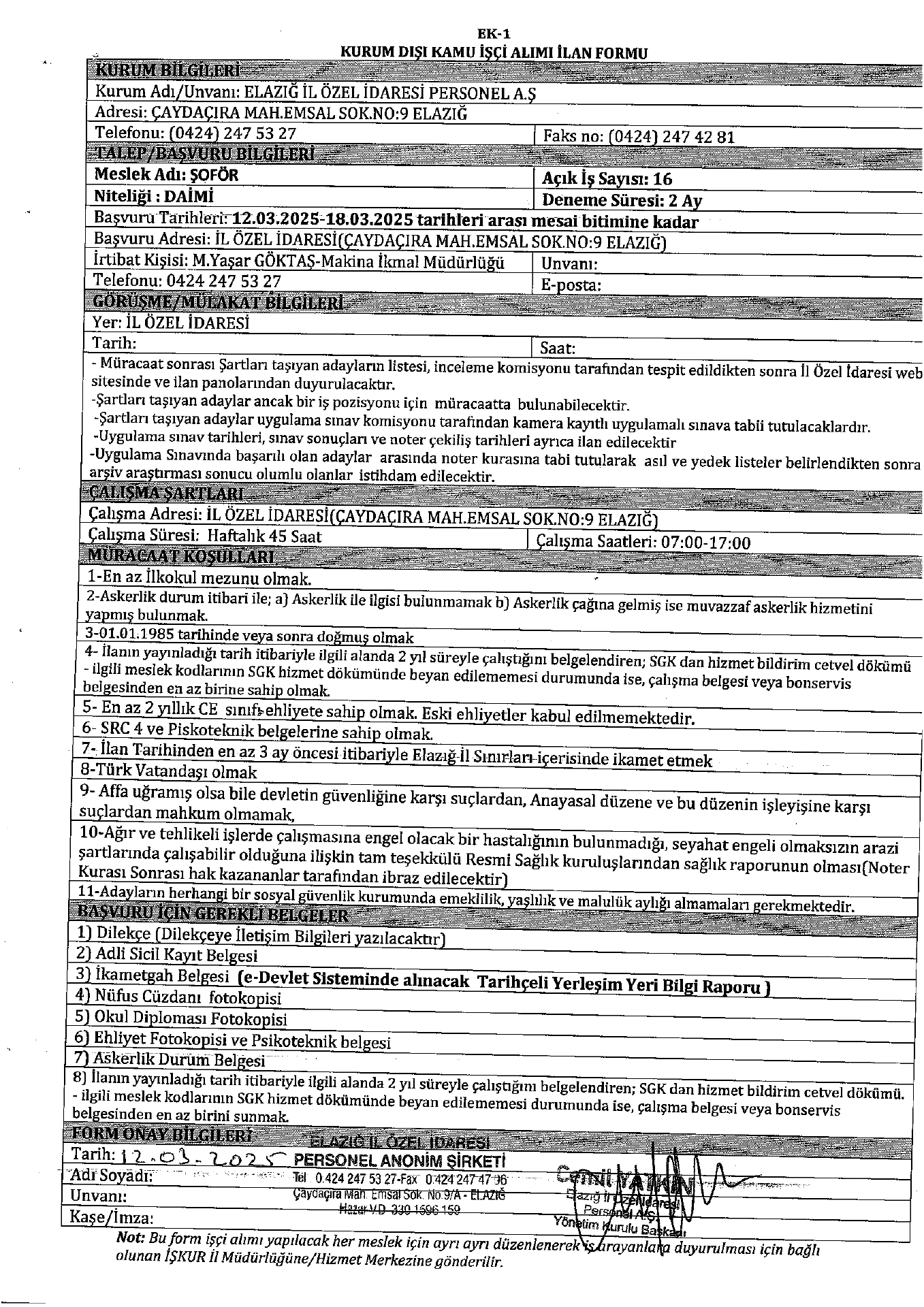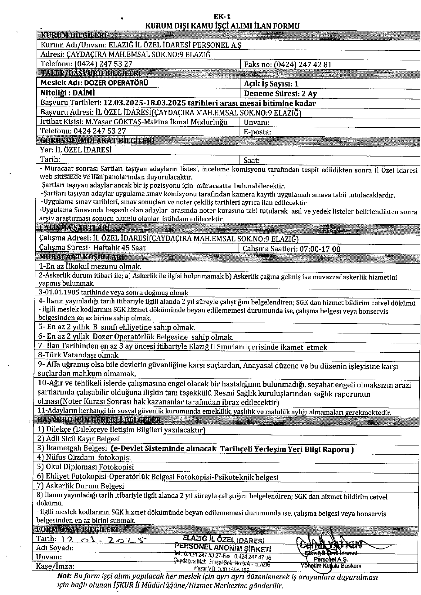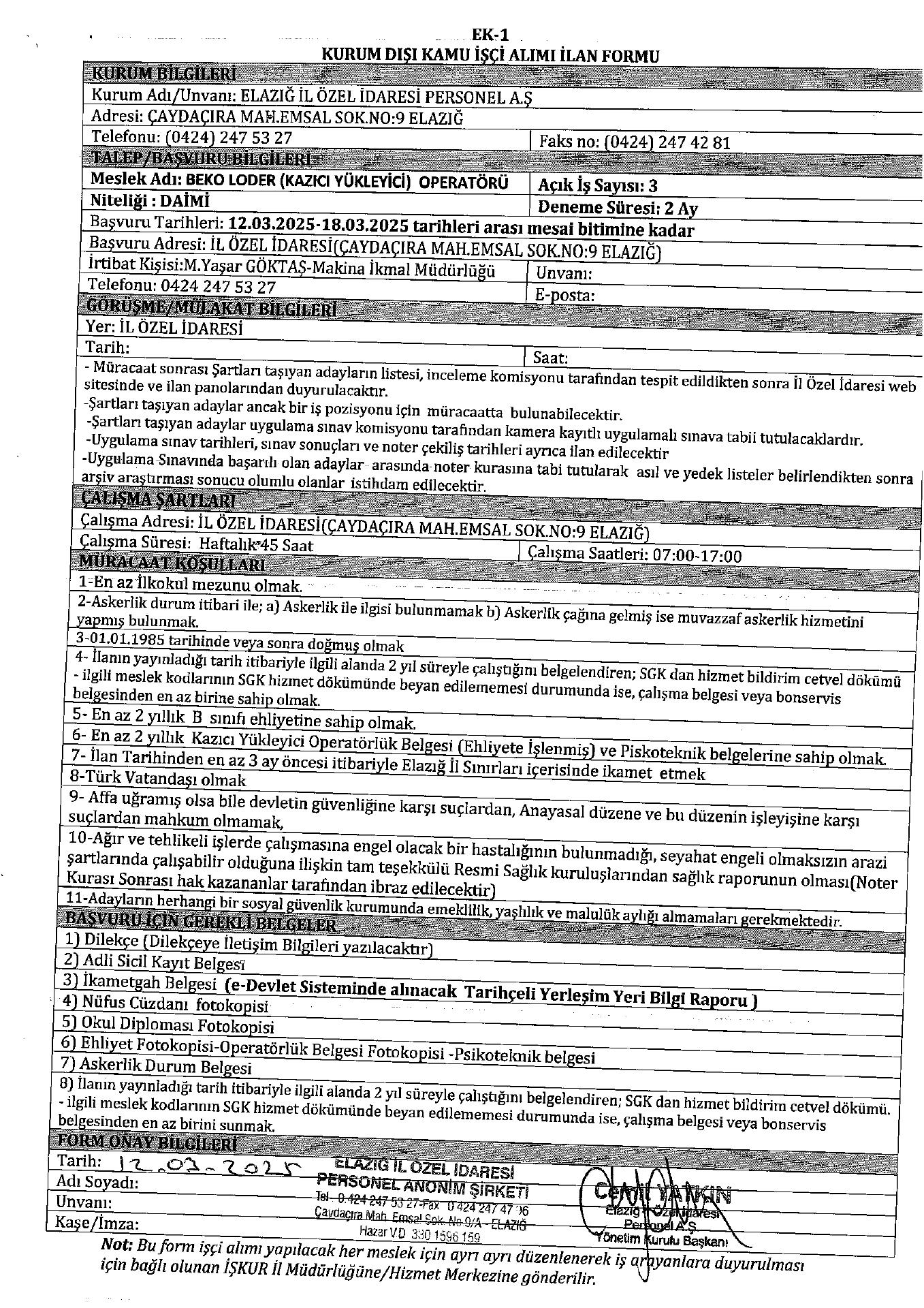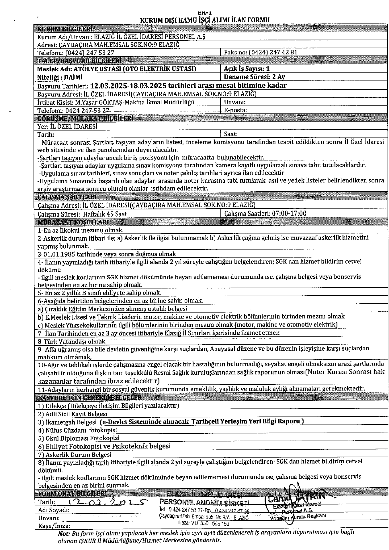 Elazığ İl Özel İdaresi 45 İşçi Alacak. Son başvuru tarihi 18 mart 2025