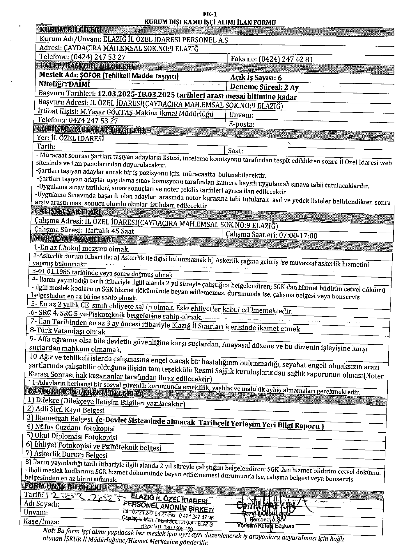 İlan Giriş : 12 Mart 2025 23:36, Son Güncelleme : 13 Mart 2025 00:49