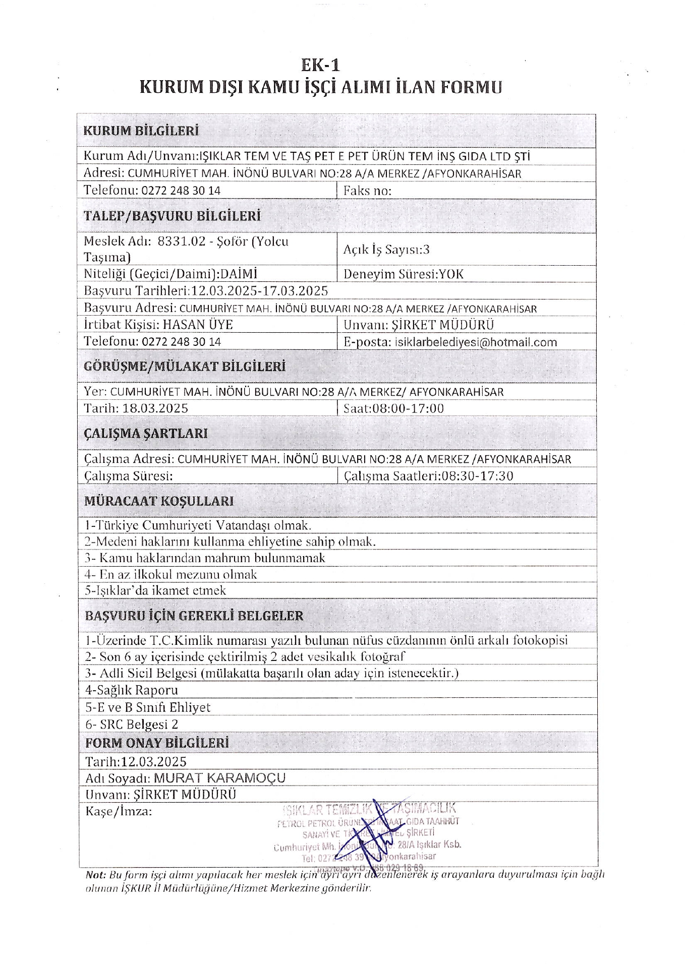 İlan Giriş : 12 Mart 2025 23:45, Son Güncelleme : 13 Mart 2025 00:46