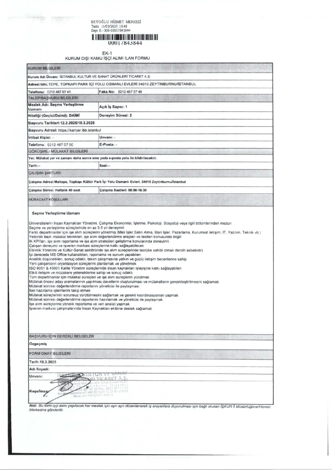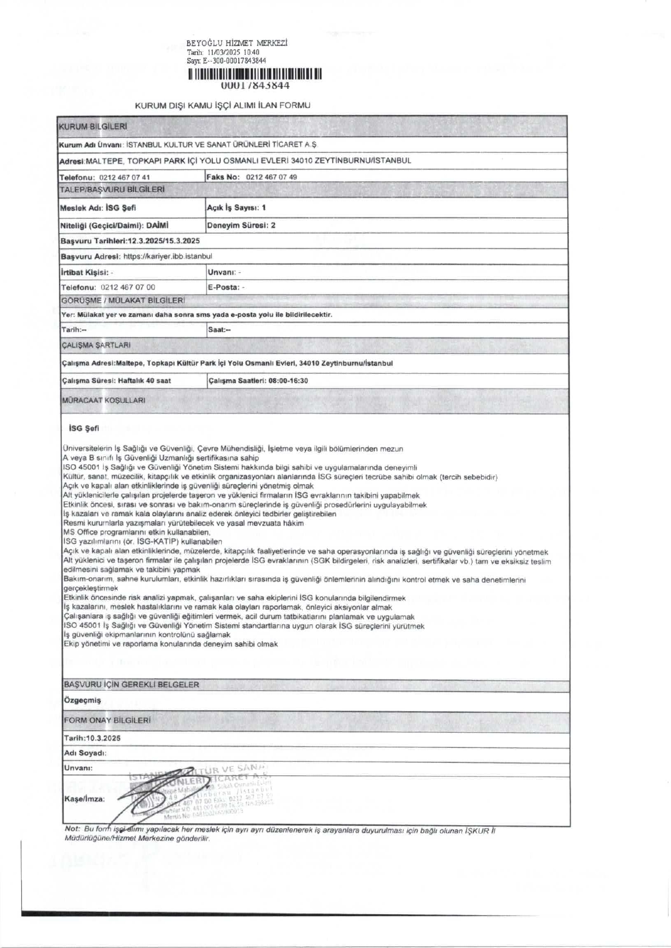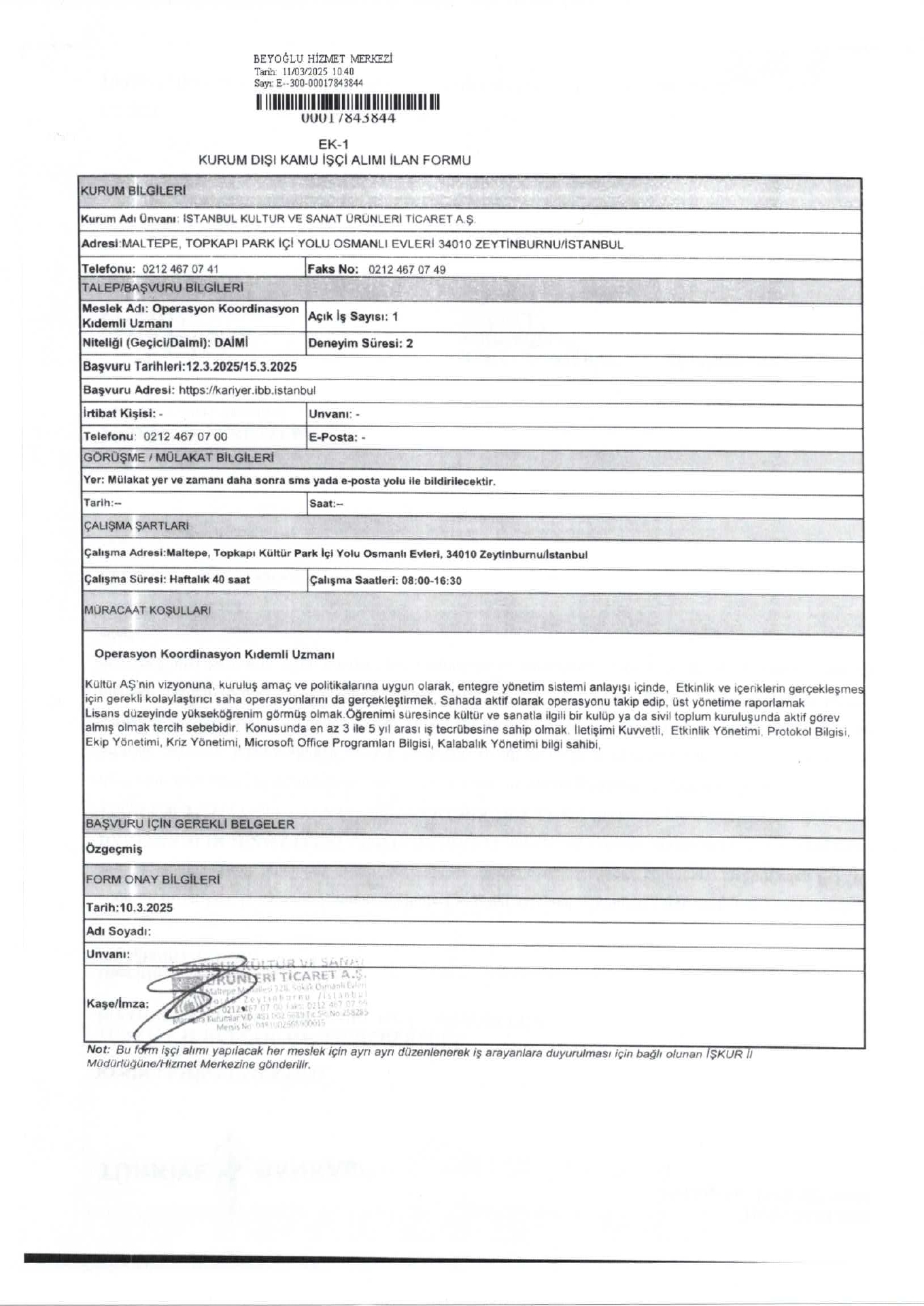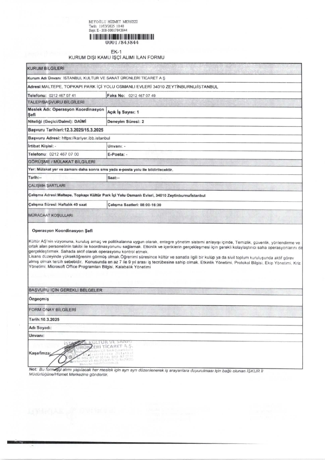 İstanbul Kültür ve Sanat Ürünleri 4 İşçi Alacak. Son başvuru tarihi 15 mart 2025