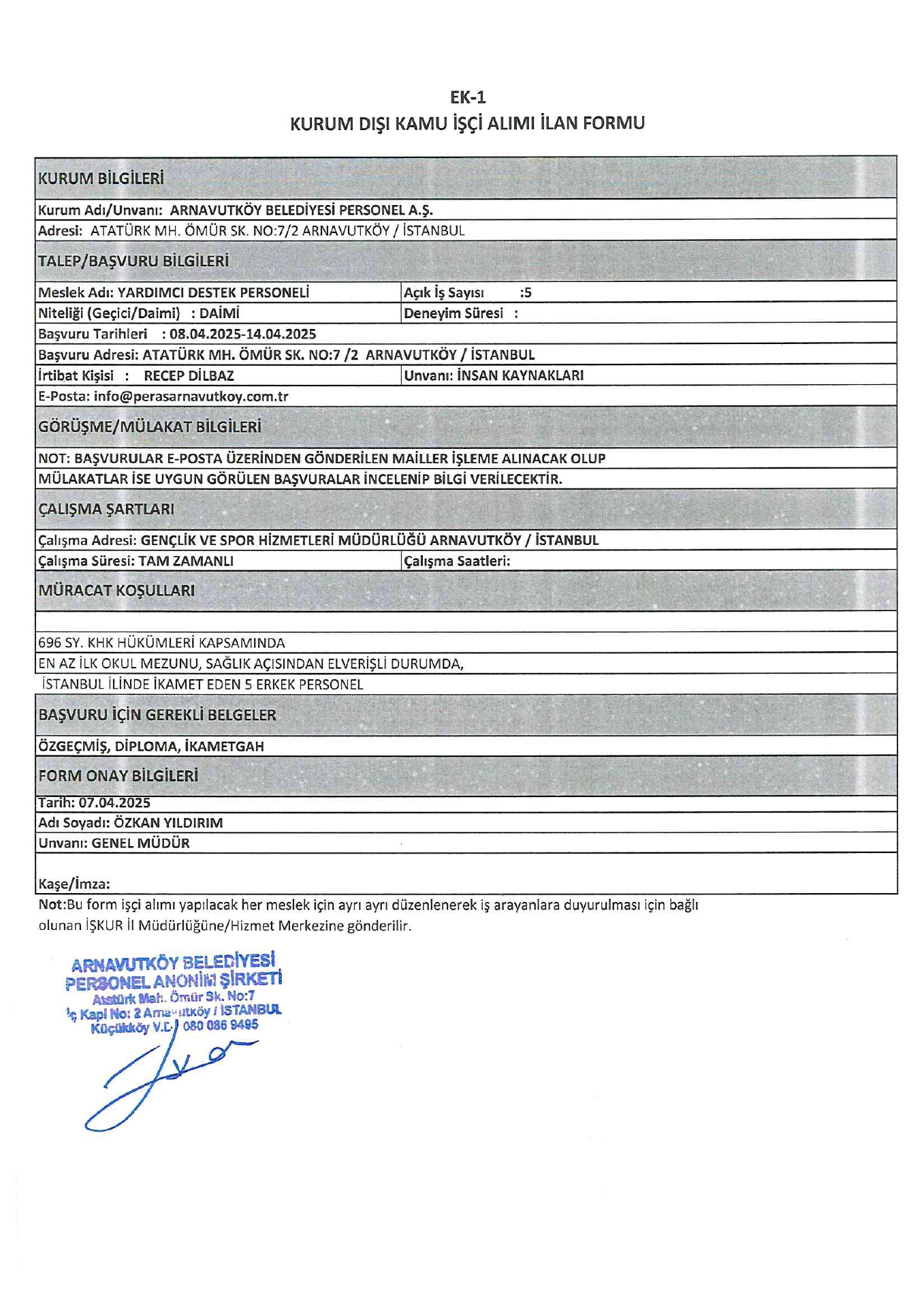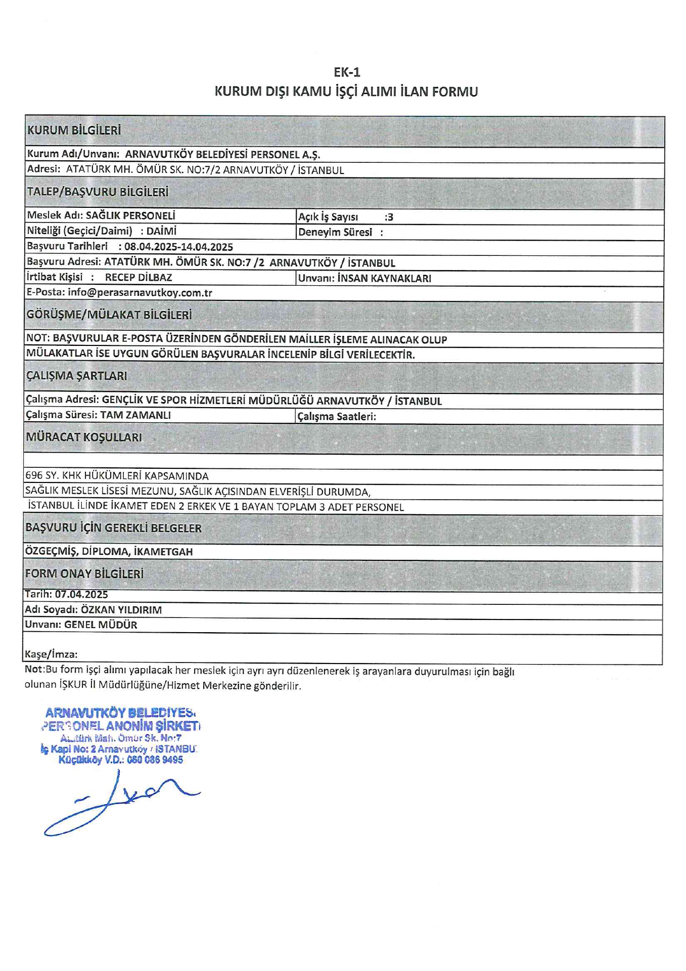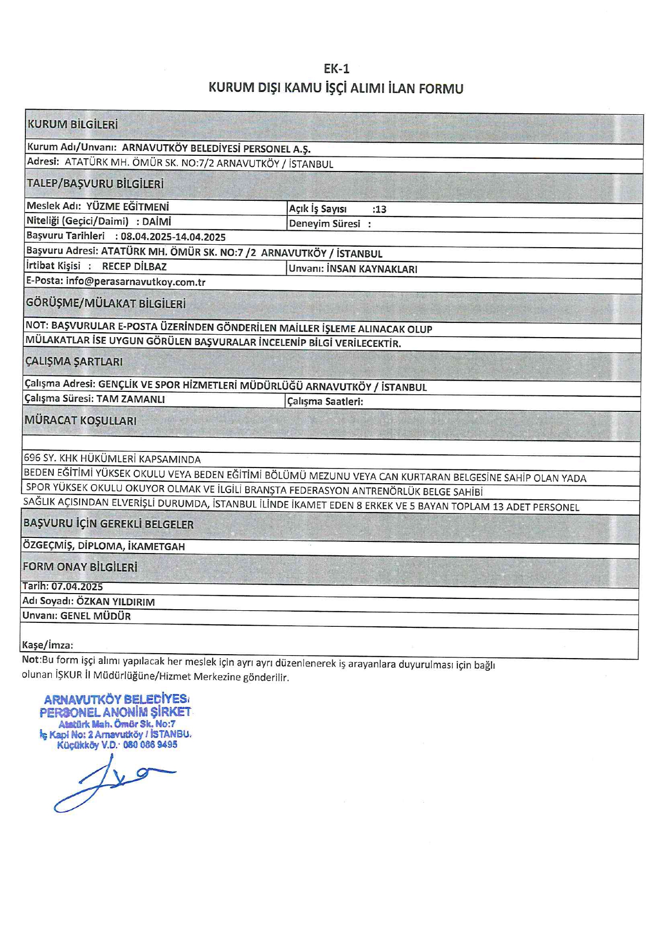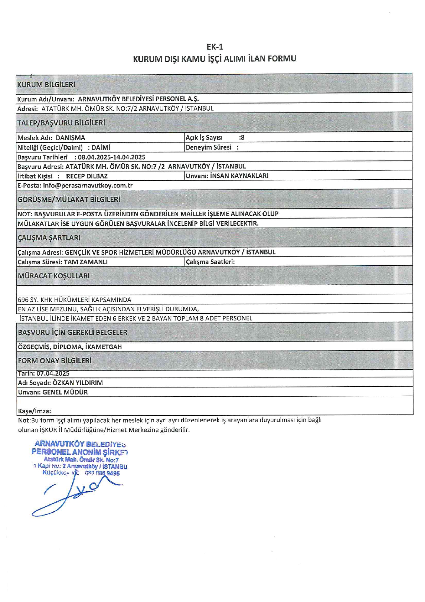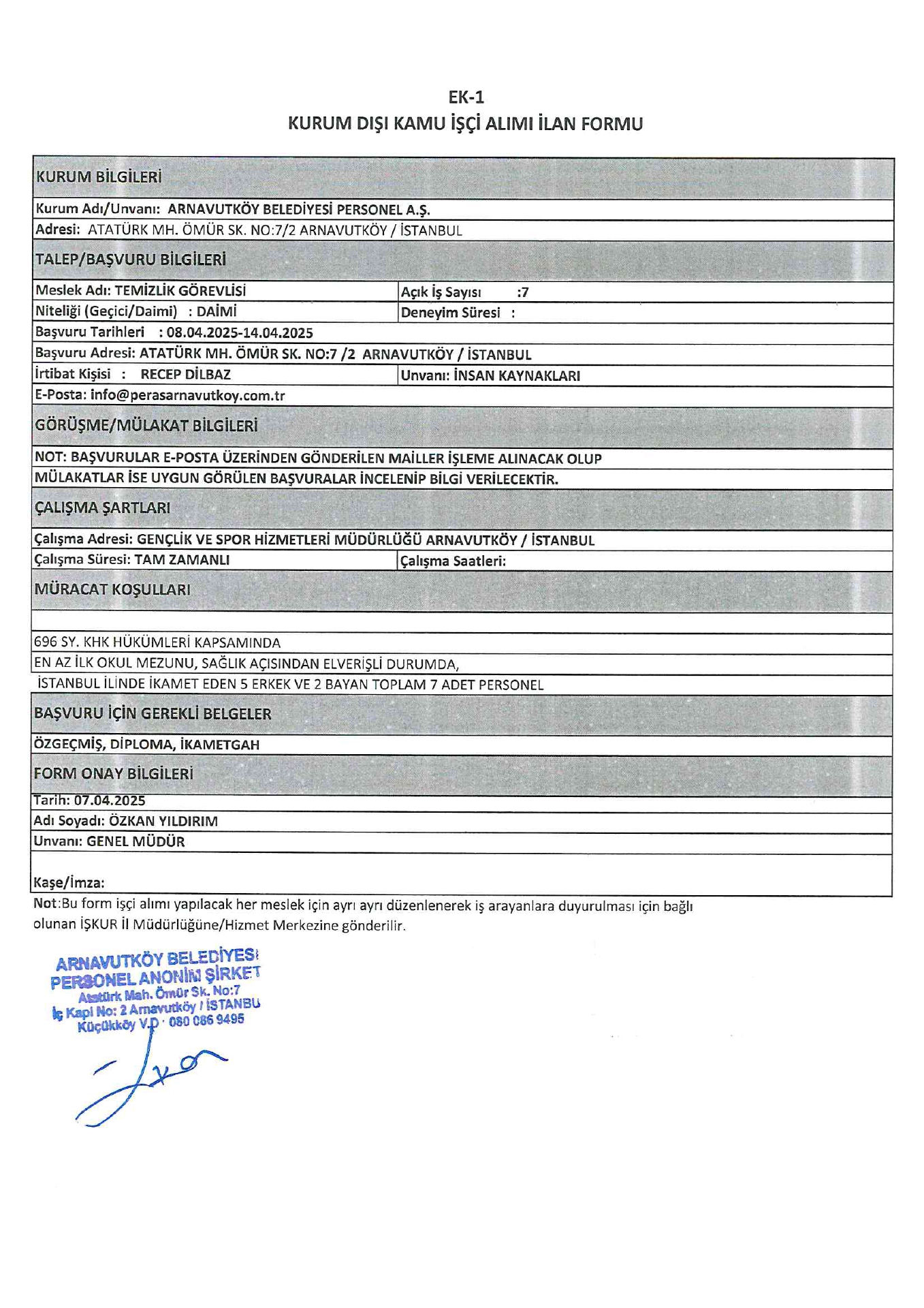 İstanbul Arnavutköy Belediyesi 36 İşçi Alacak. Son başvuru tarihi 14 nisan 2025