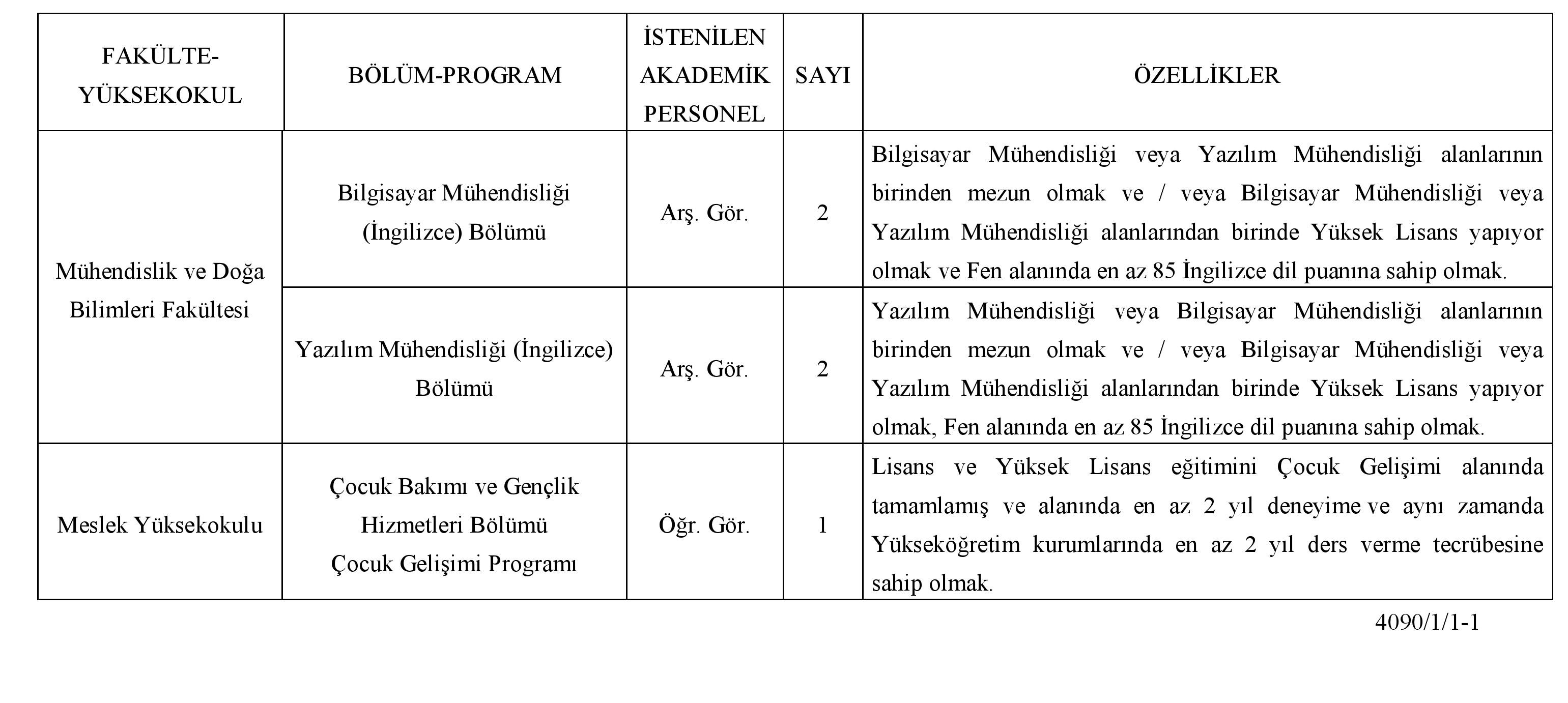Not: Adayların ilan tarihini izleyen 15 gün içinde Rektörlüğümüze şahsen veya postayla başvurmaları gerekmektedir. Son başvuru tarihinden sonra ve eksik belgeyle yapılan başvurular geçersiz sayılacaktır.