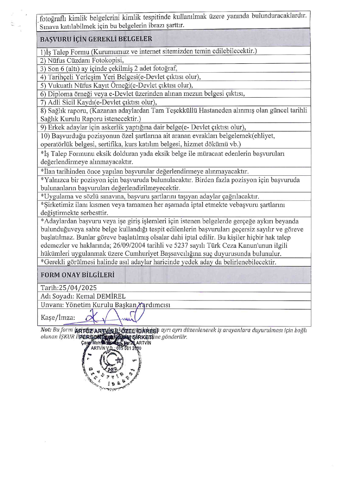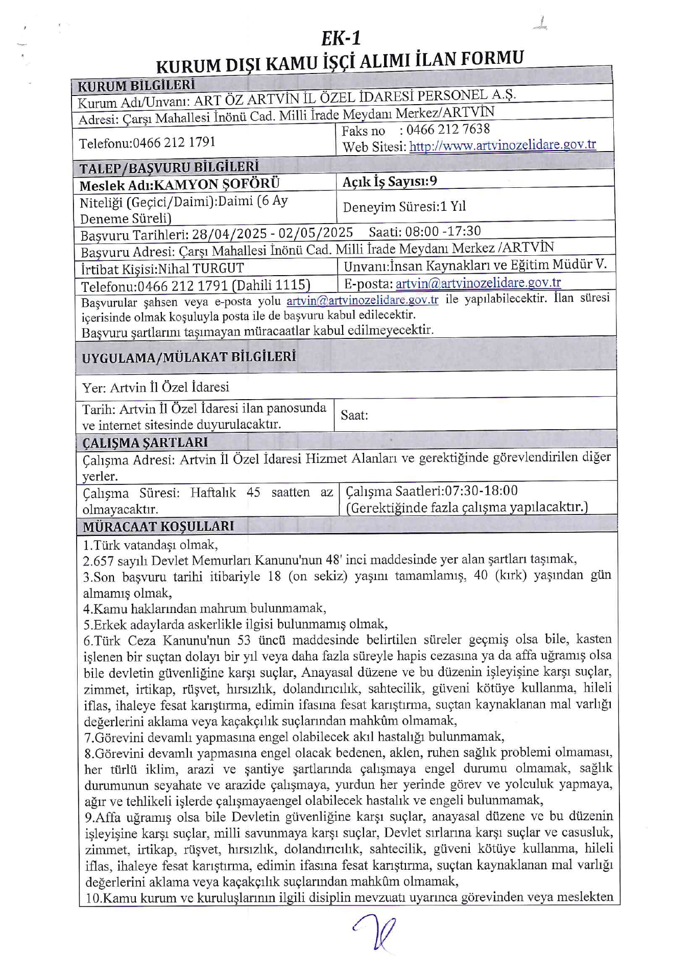 Artvin İl Özel İdaresi 9 İşçi Alacak