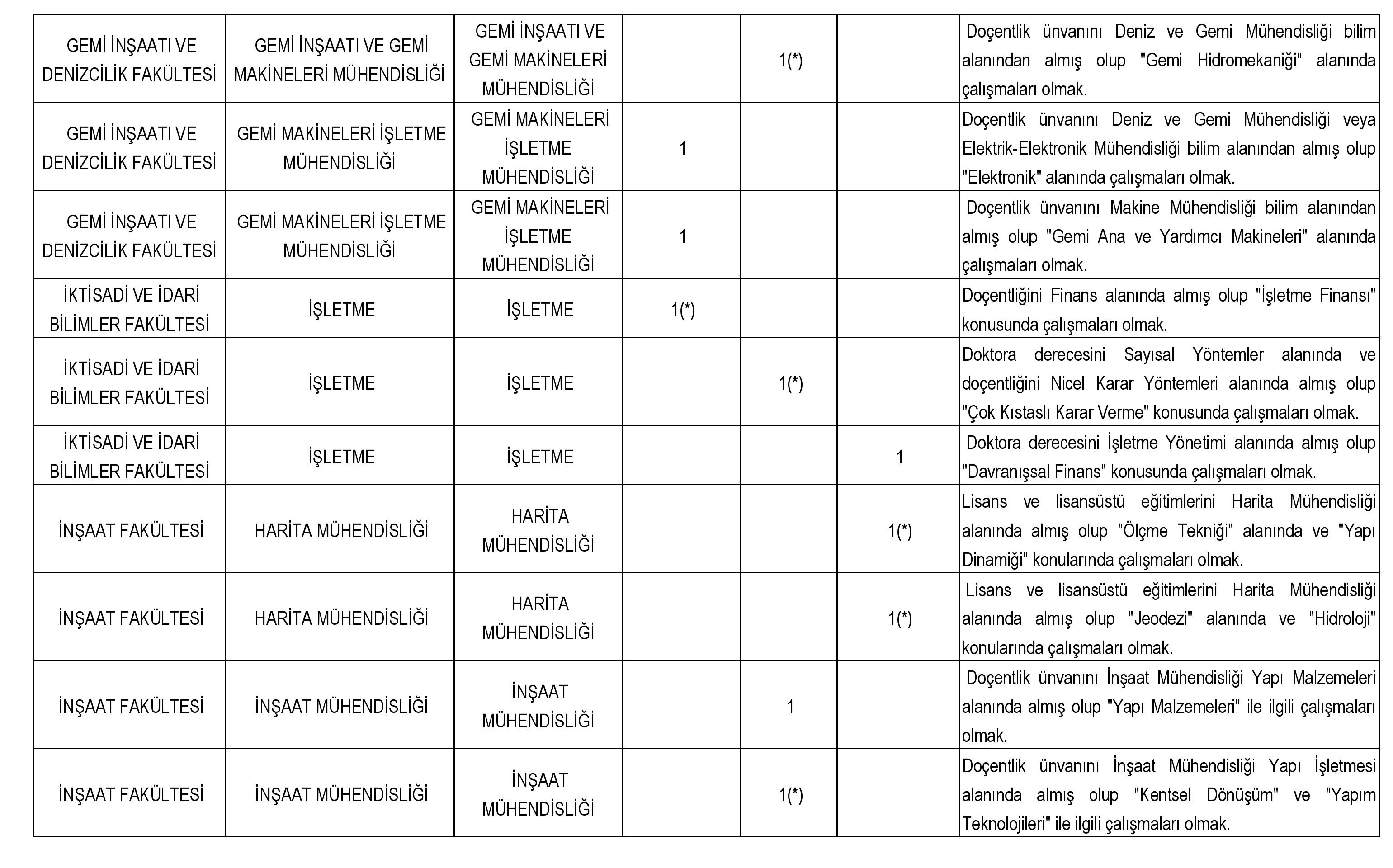 Yıldız Teknik Üniversitesi Öğretim Üyesi Alım İlanı