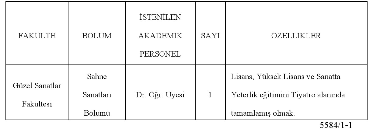 Not: Adayların ilan tarihini izleyen 15 gün içinde Rektörlüğümüze şahsen veya postayla başvurmaları gerekmektedir. Son başvuru tarihinden sonra ve eksik belgeyle yapılan başvurular geçersiz sayılacaktır.