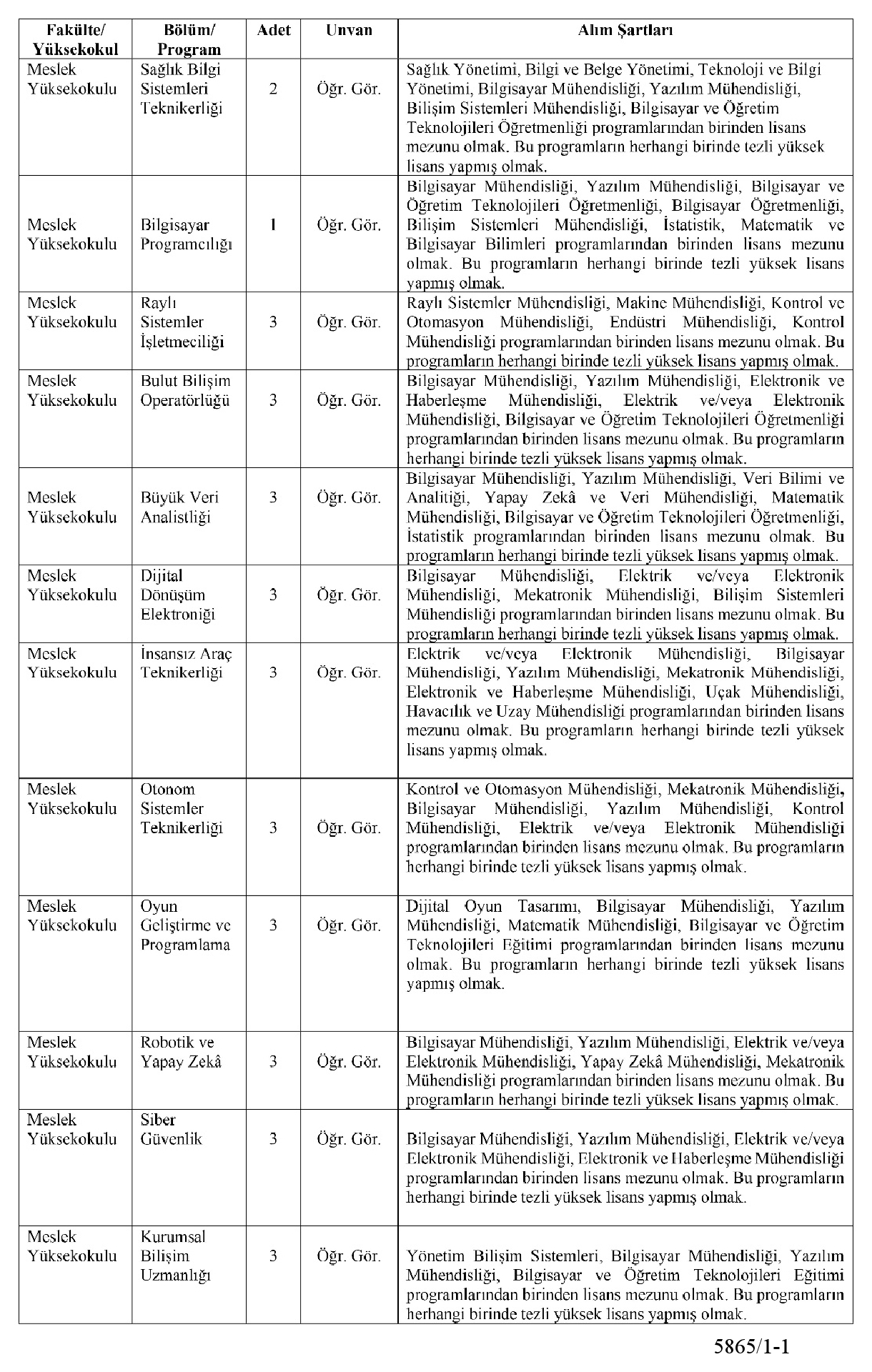 Üniversitemizin aşağıda belirtilen akademik birimlerine, 2547 sayılı Yükseköğretim Kanunu ve Öğretim Üyesi Dışındaki Öğretim Elemanı Kadrolarına Yapılacak Atamalarda Uygulanacak Merkezi Sınav ile Giriş Sınavlarına İlişkin Usul ve Esaslar Hakkında Yönetmelik'in ilgili maddelerine göre Öğretim Elemanları alınacaktır.