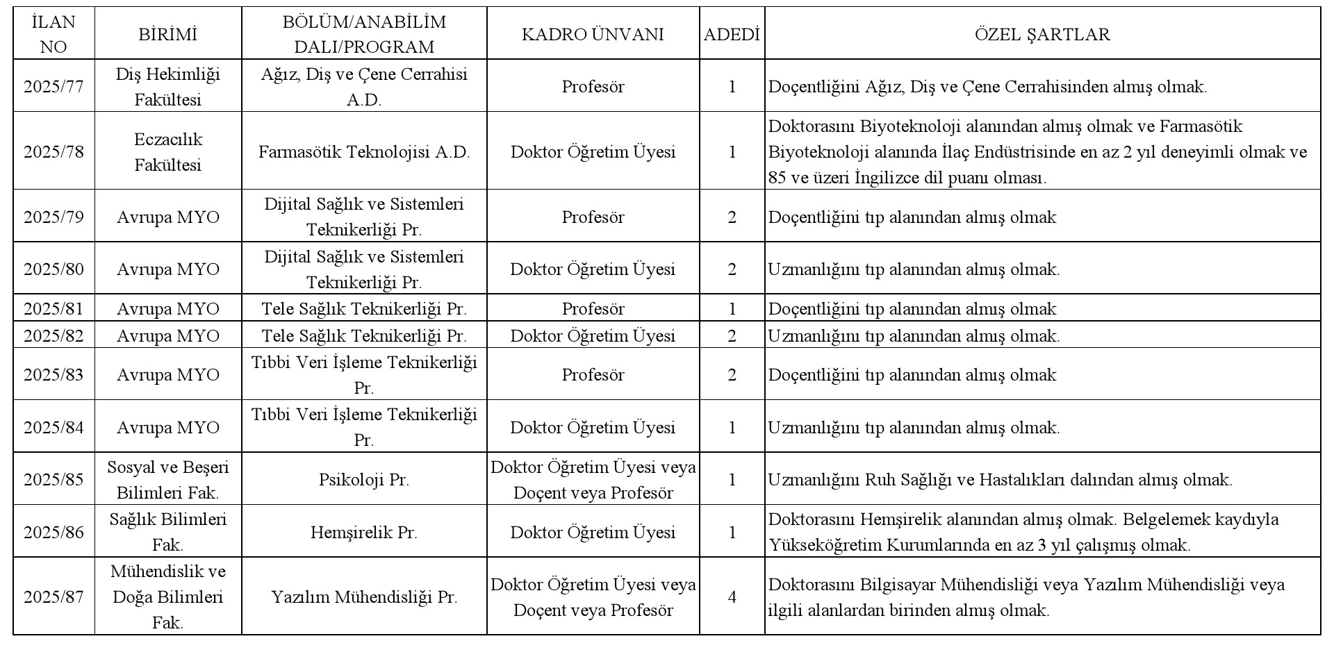 3. Üniversitemizin ilan ve ilan takviminde değişikli yapma hakkı saklıdır.