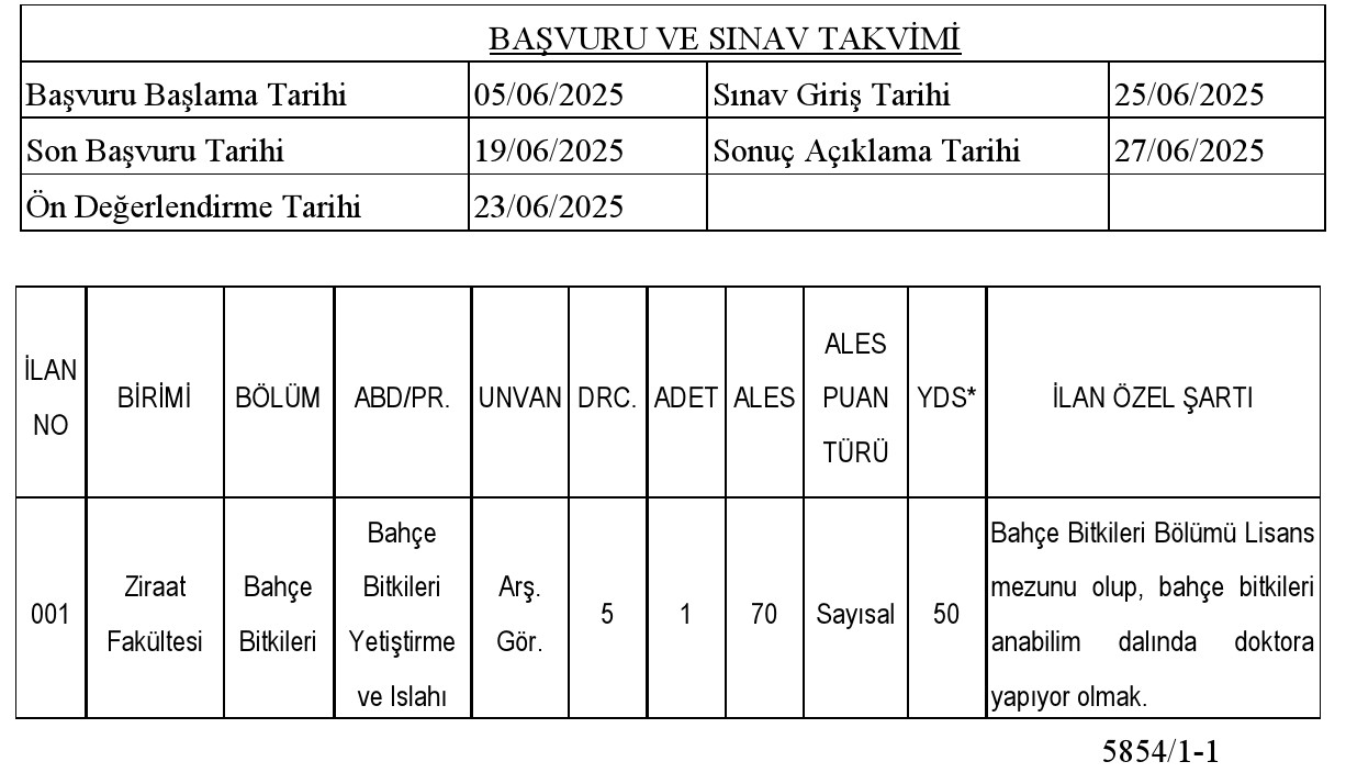 9. İlan Tarihi: 05/06/2025-19/06/2025