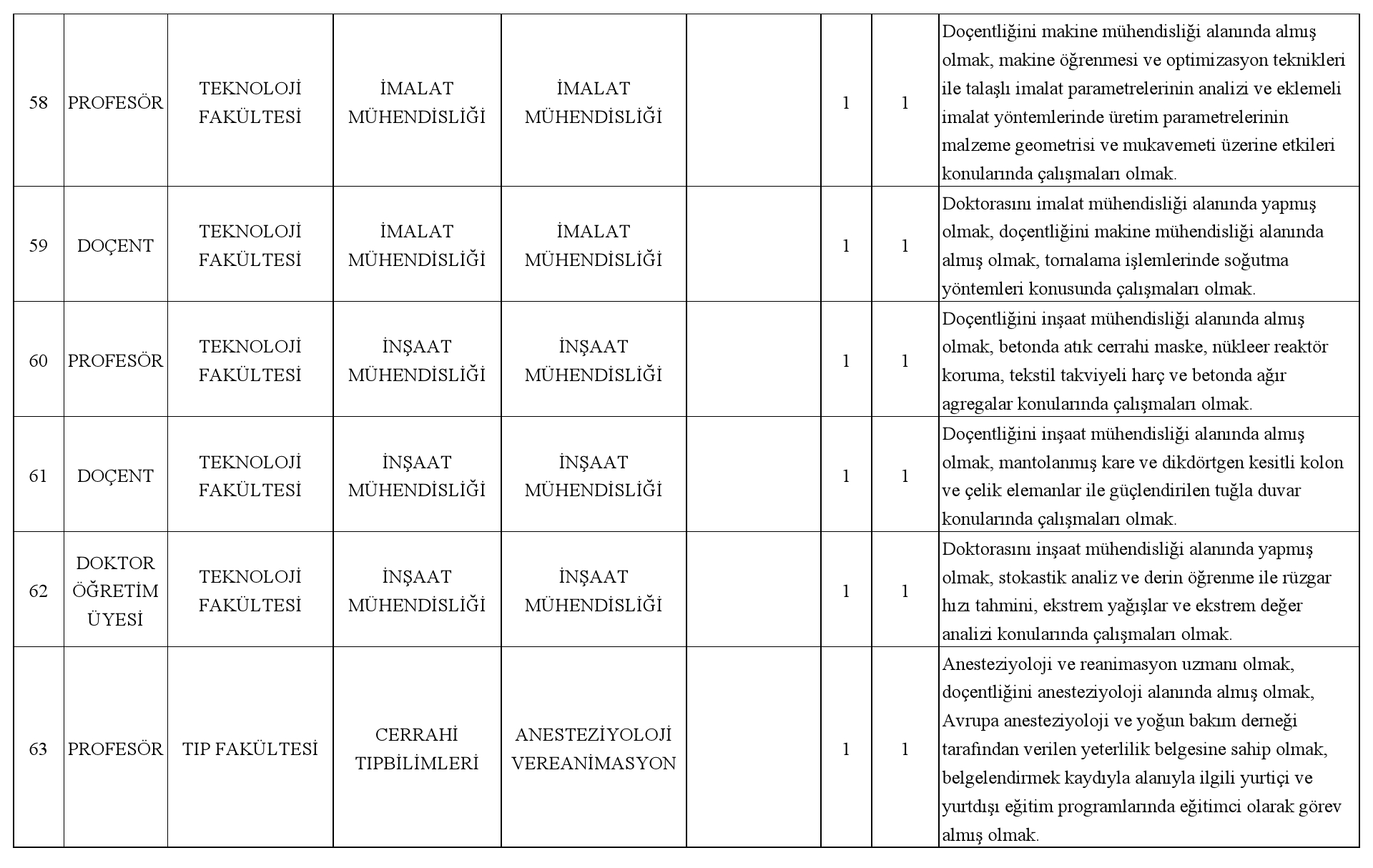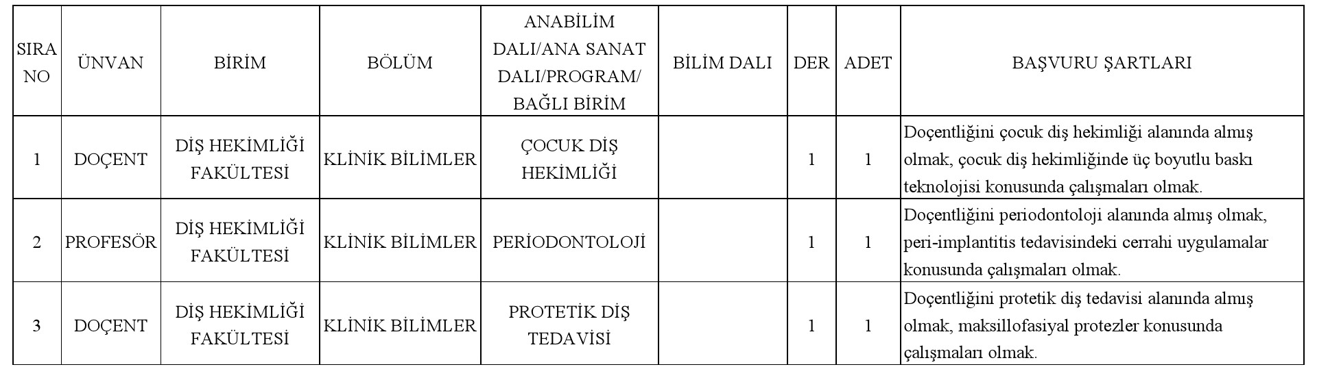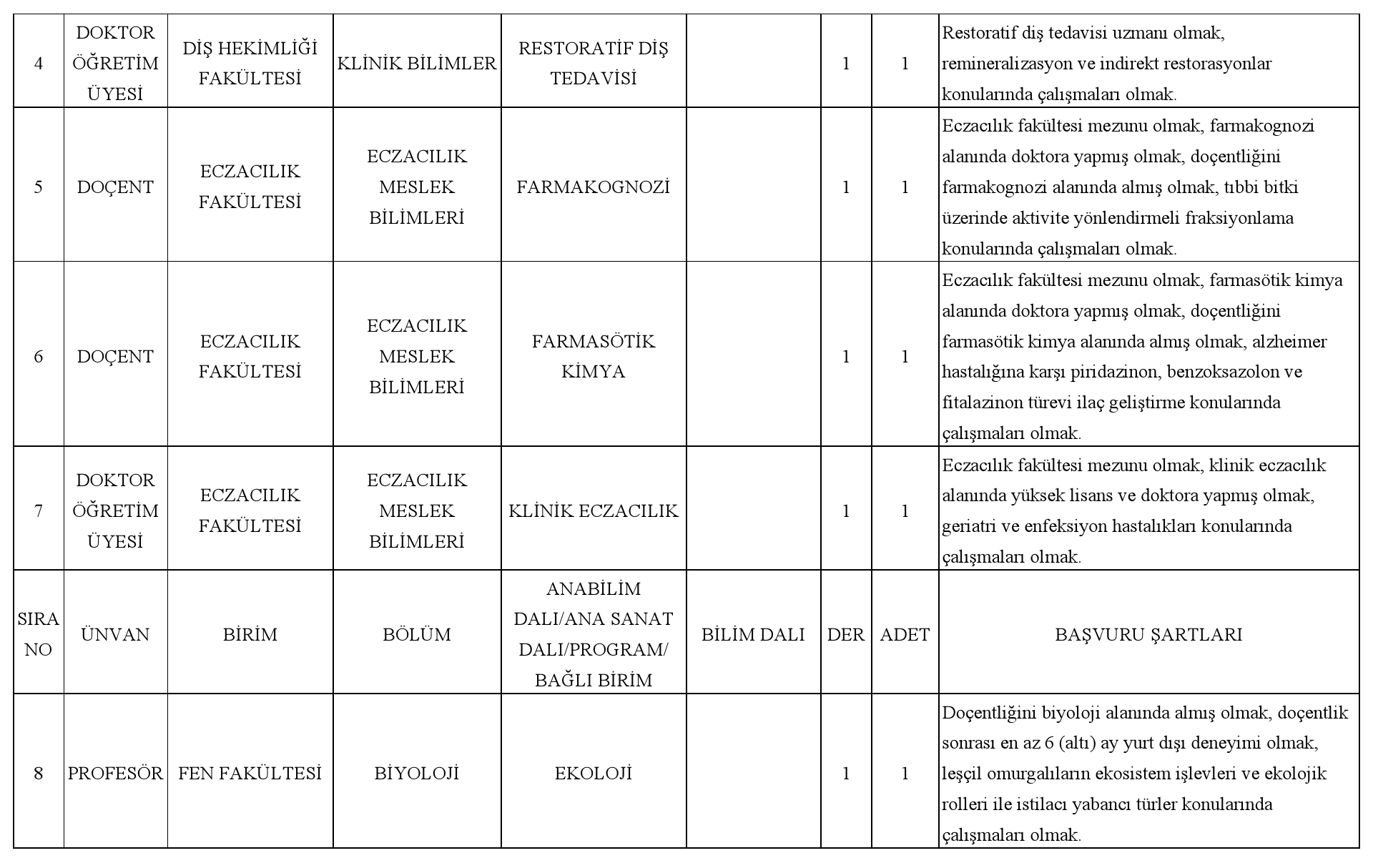 ÖĞRETİM ÜYESİ ALIMI İLANI