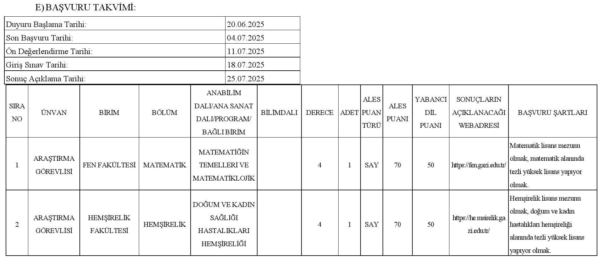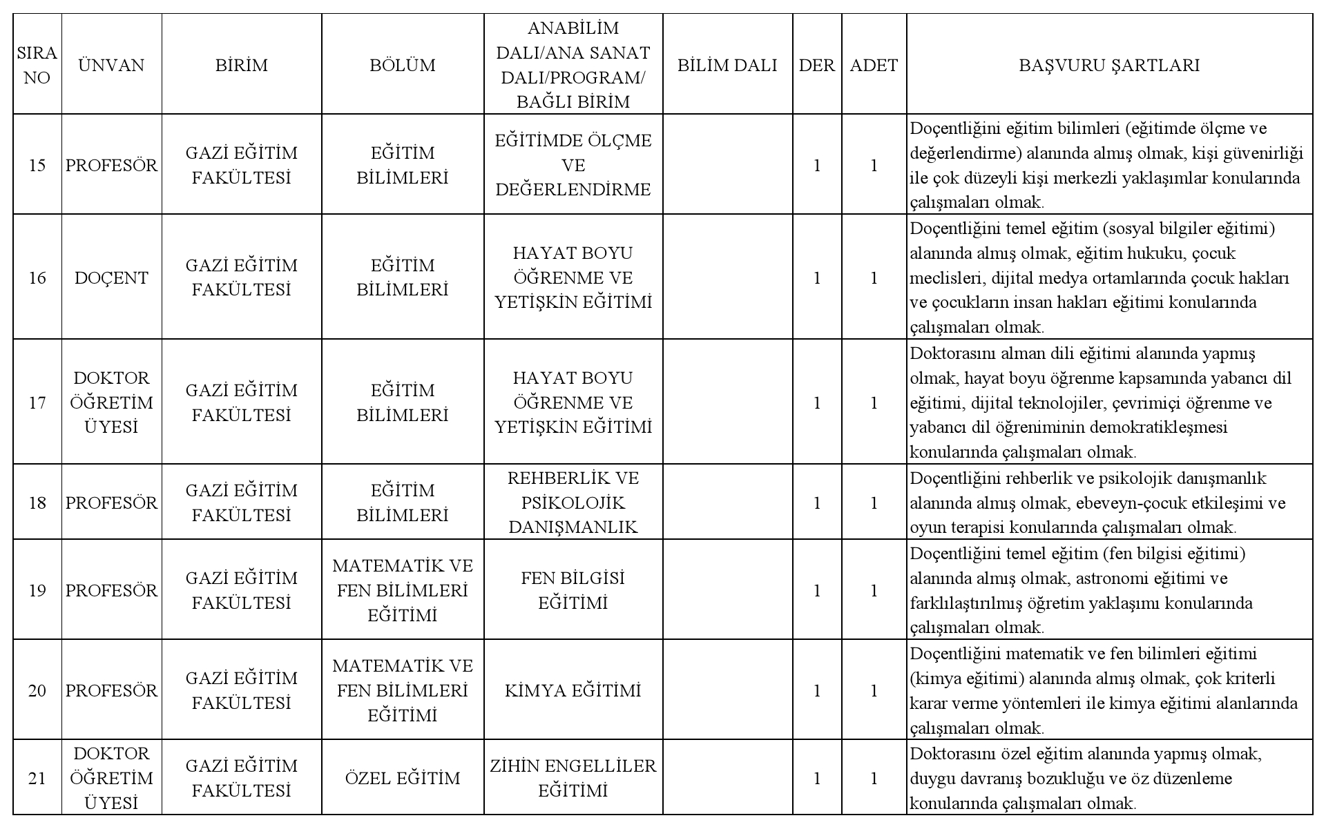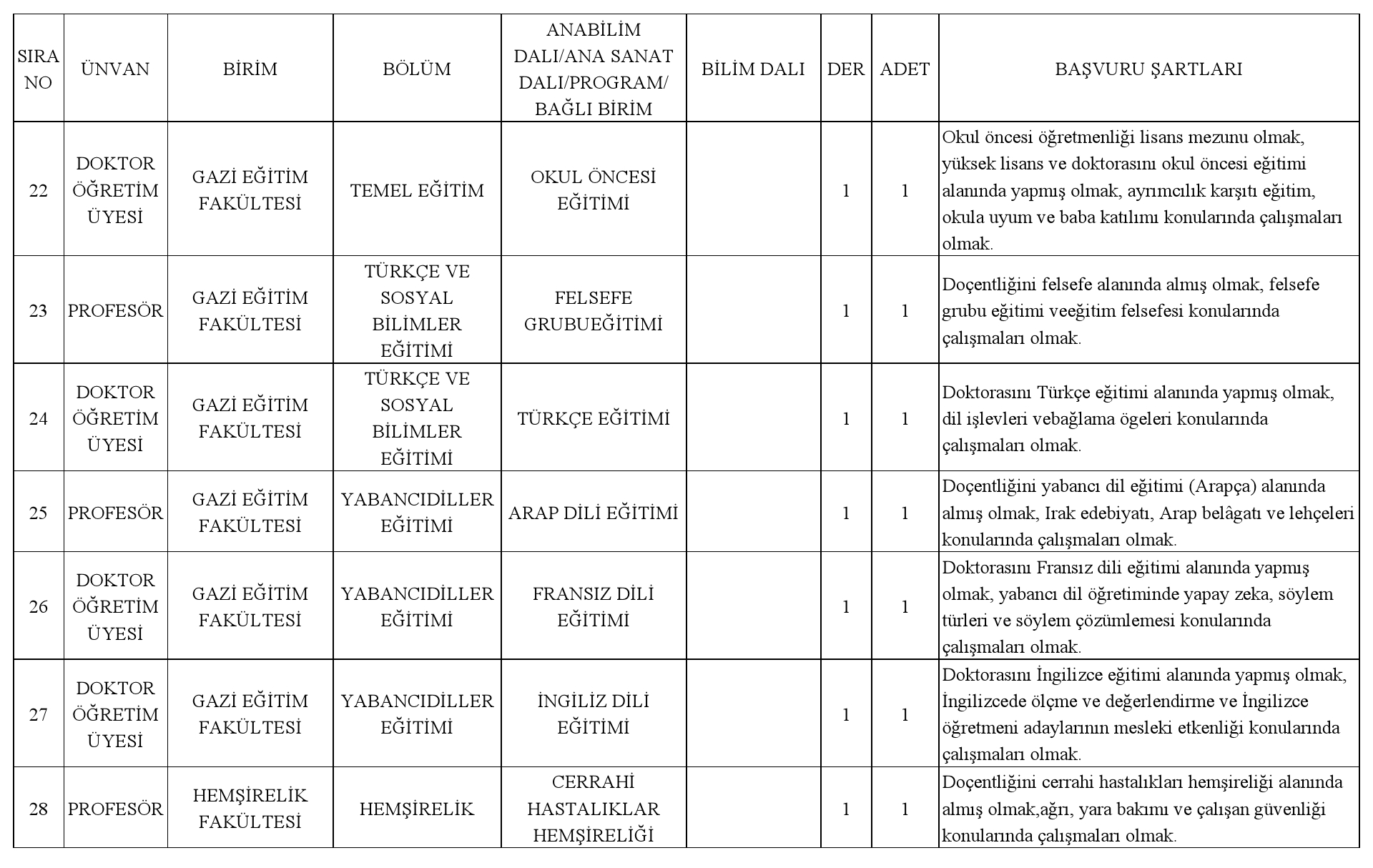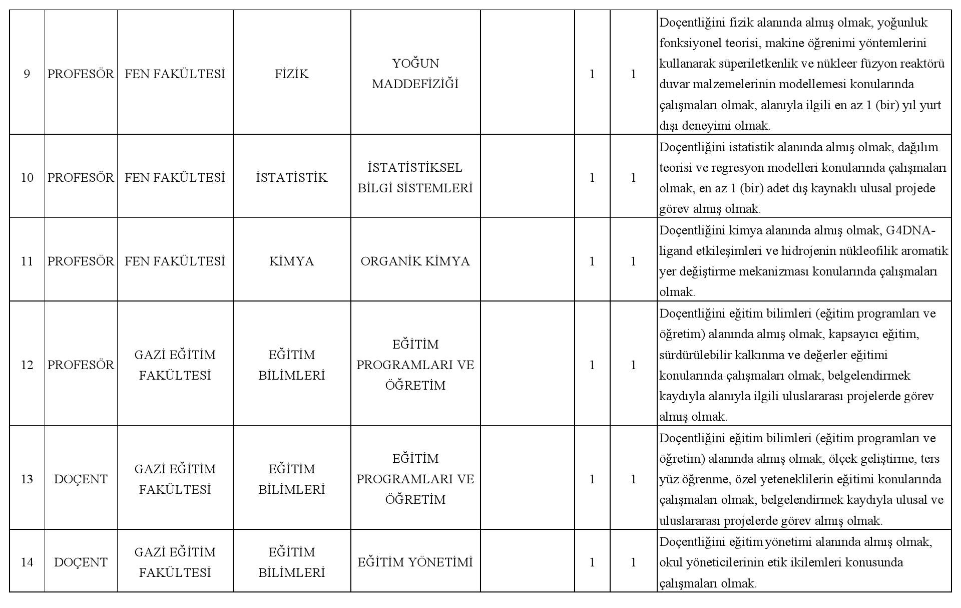 Gazi Üniversitesi Öğretim Üyesi ve Elemanı Alım İlanı. Son başvuru tarihi 4 temmuz 2025