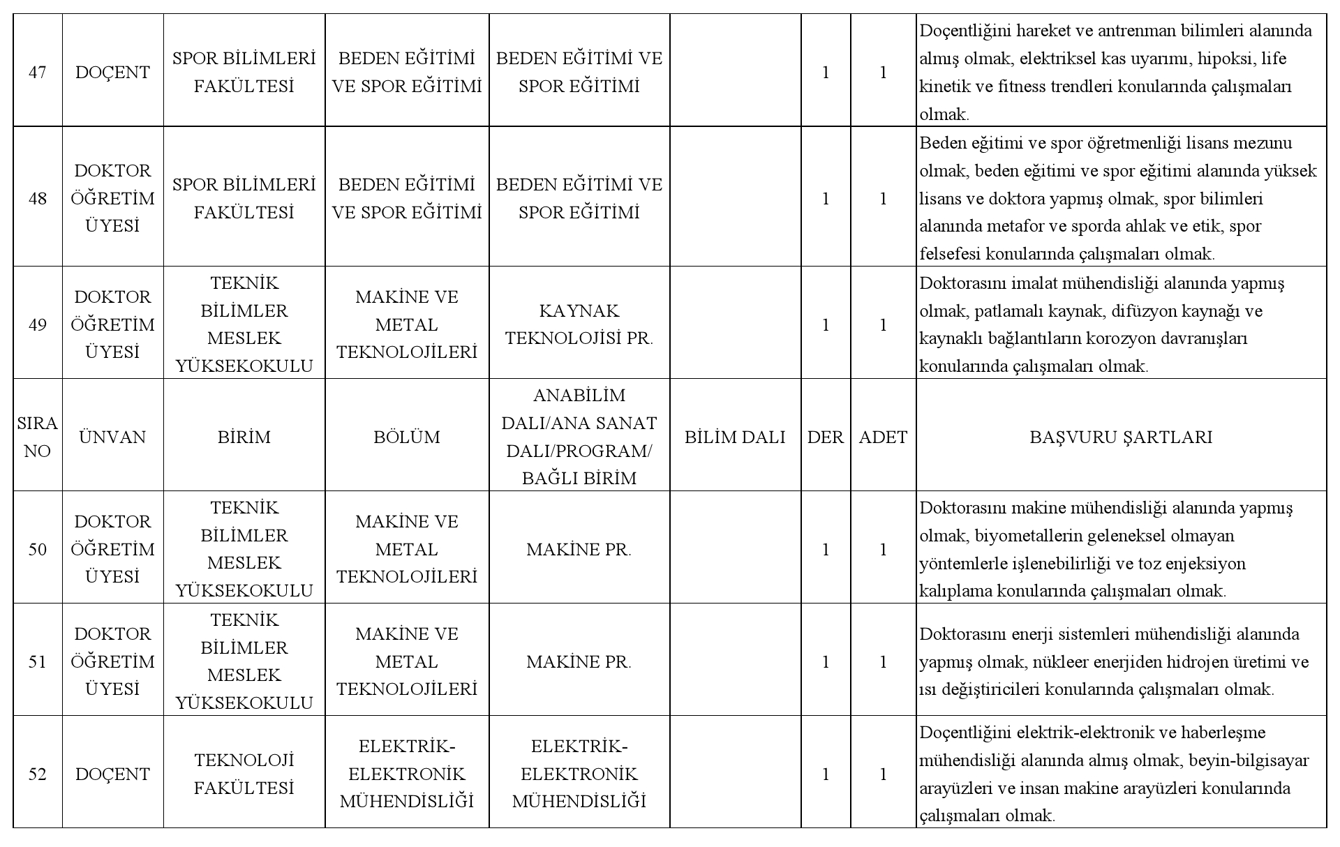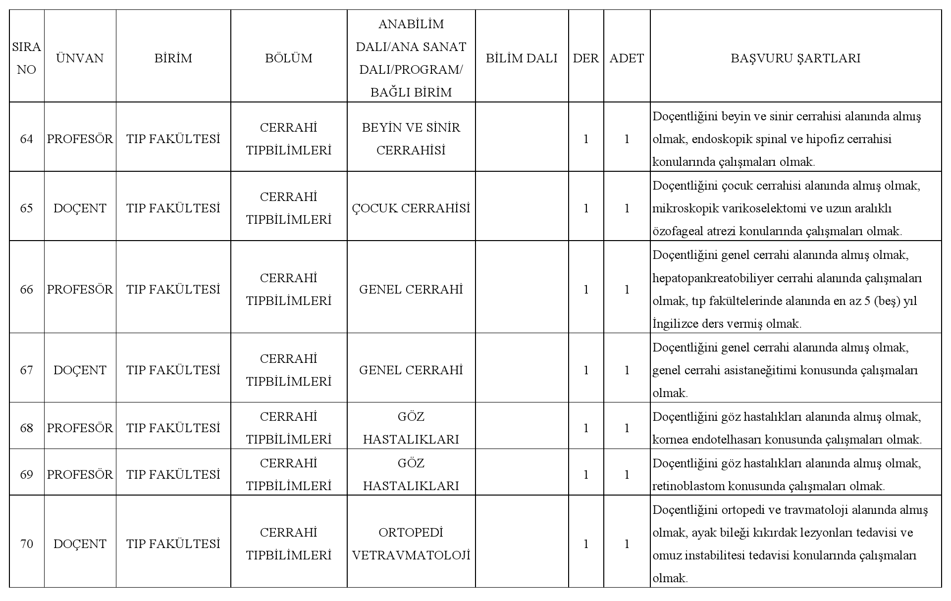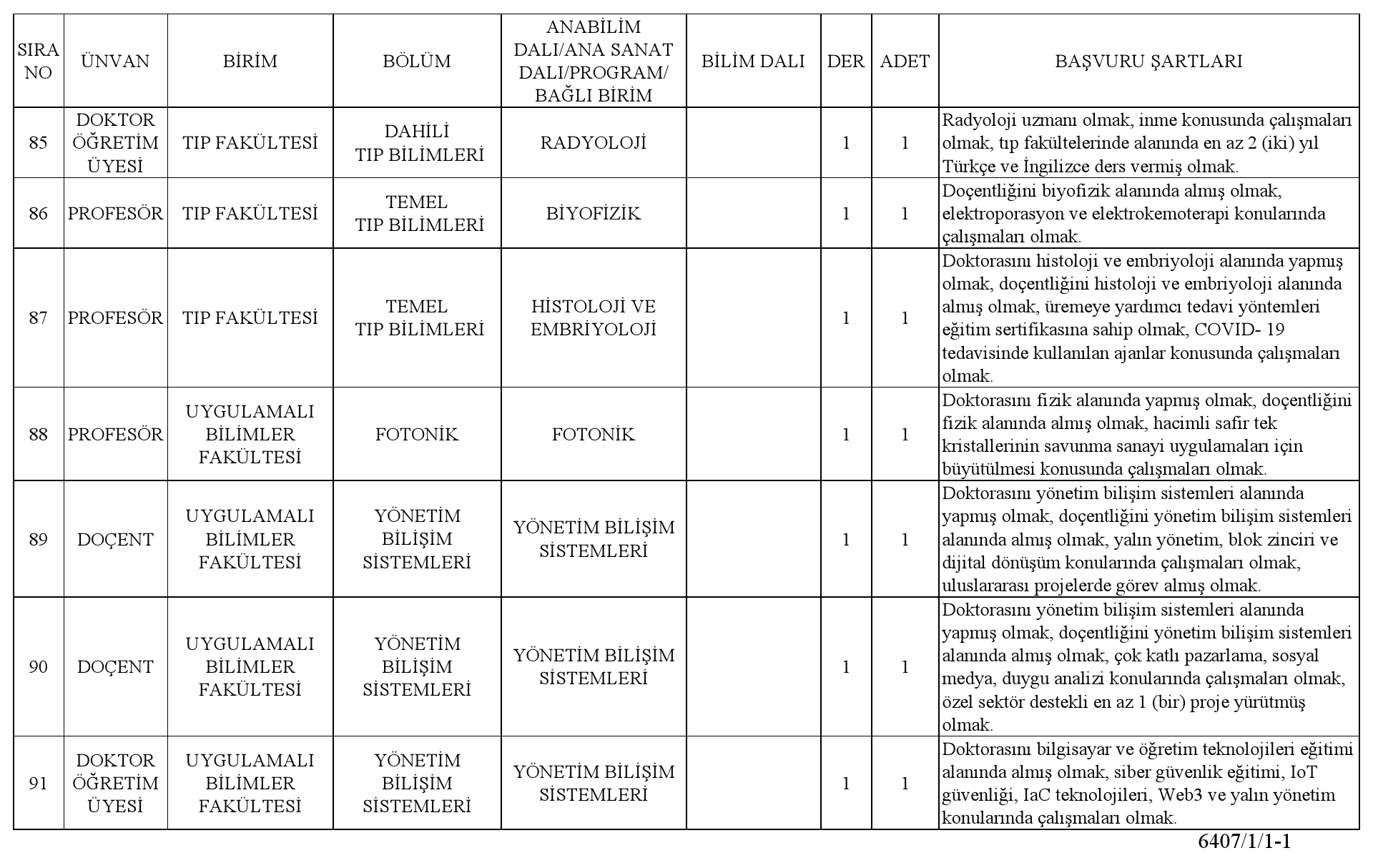 6.2547 sayılı Yükseköğretim Kanunu'nun 7100 sayılı Kanunla değişik 23/c, 24/d ve 5772 sayılı Kanunla değişik 26./a-2 maddelerinde öngörülen ek koşullara karşılık gelen Üniversitemiz Akademik Yükseltilme ve Atanma Kriterleri Yönergesinde belirtilen şartları taşımayan adayların başvuruları üniversitemizce kabul edilmeyecektir.