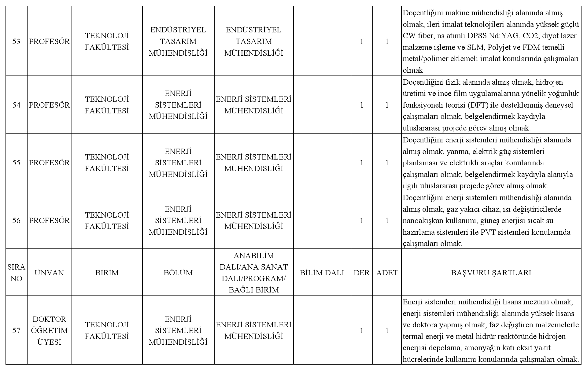 Üniversitemizin aşağıda belirtilen birimlerine 2547 sayılı Yükseköğretim Kanunu ve 657 sayılı