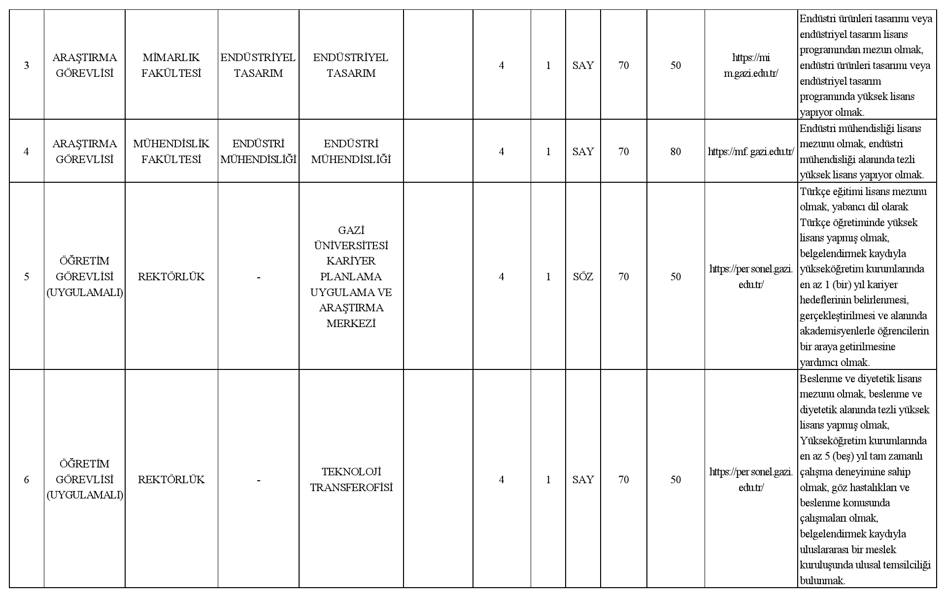 3.Başvuruda istenen tüm belgelerin https://personelilan.gazi.edu.tr adresi üzerinden elektronik olarak yüklenmesi gerekmektedir.