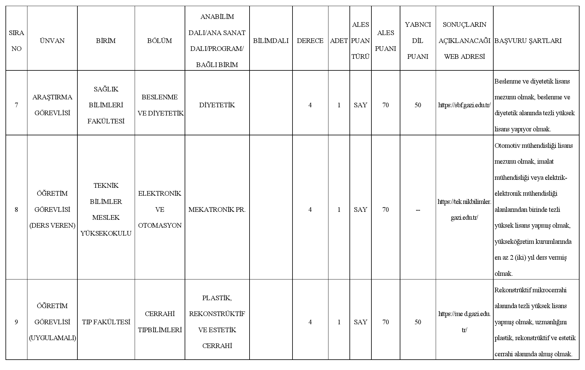 8.Başvuruda istenen aşağıda belirtilen tüm belgelerin https://personelilan.gazi.edu.tr adresi üzerinden elektronik olarak yüklenmesi gerekmektedir.