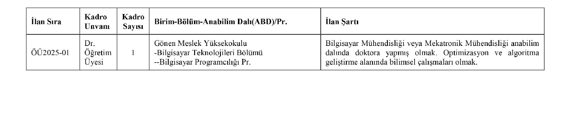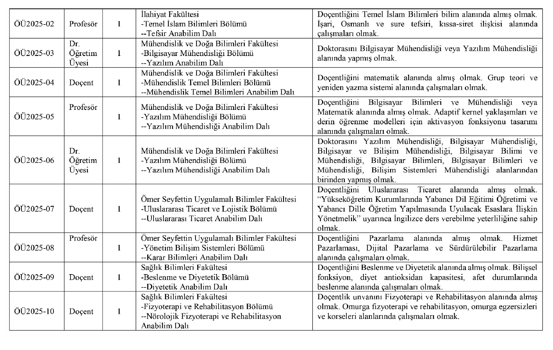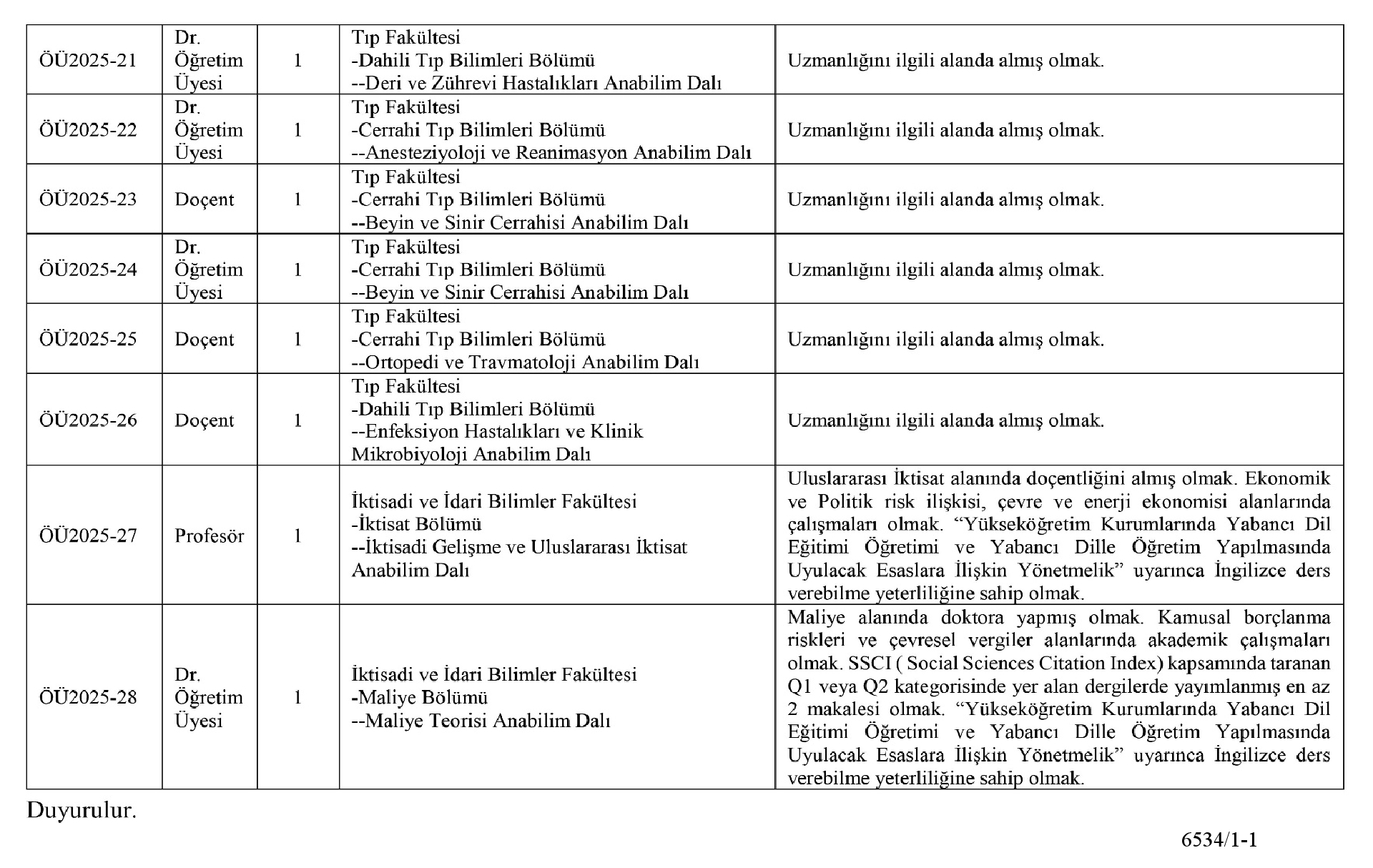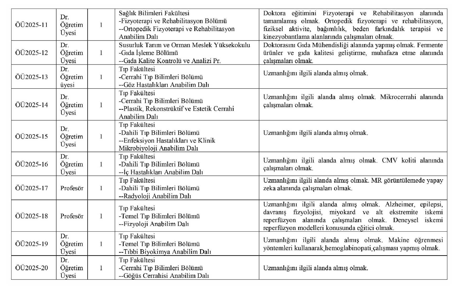ÖĞRETİM ÜYESİ ALIM İLANI (2025-01)