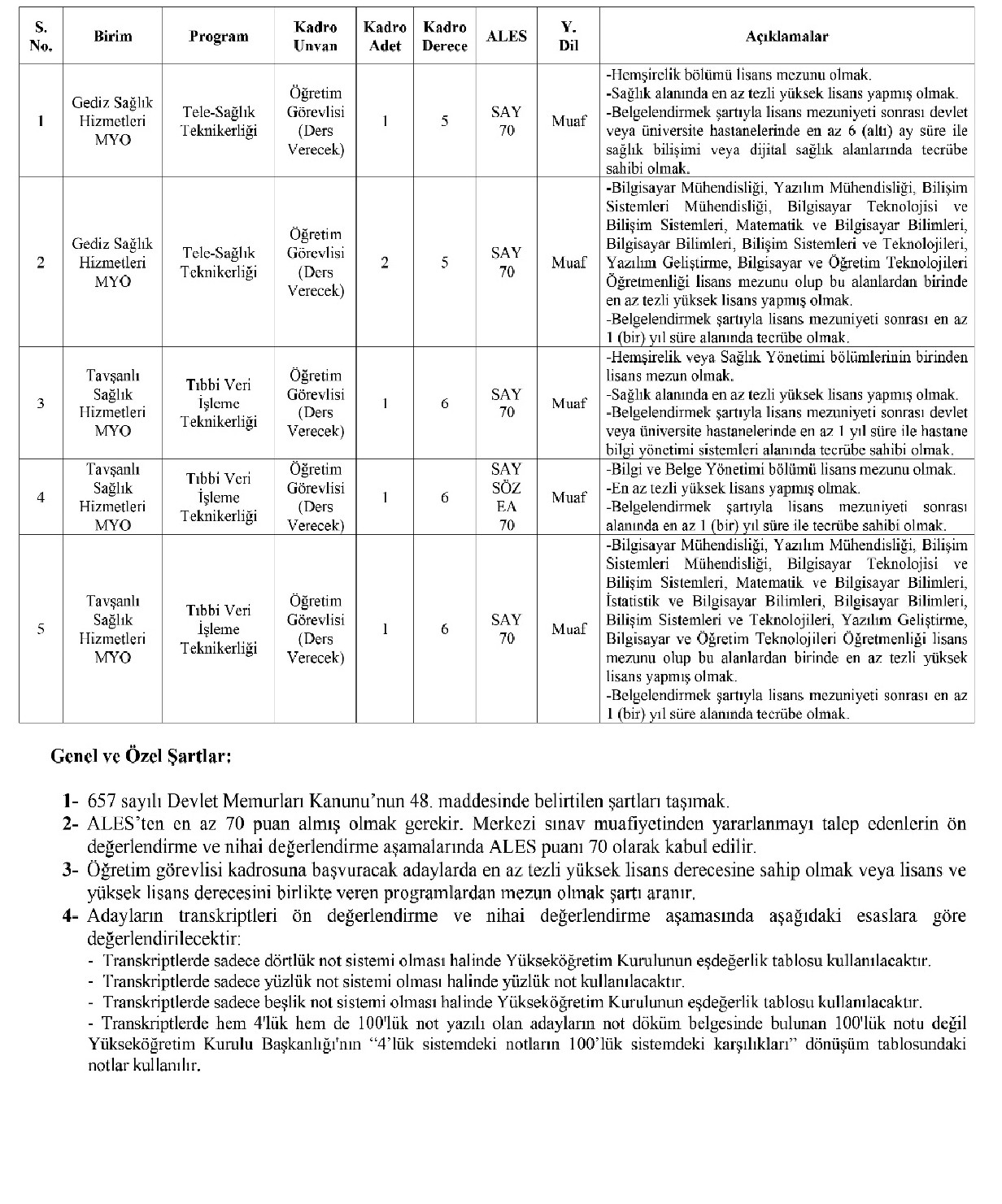 3- İlanda yer alacak özel şartlara göre öğretim elemanı kadrolarına başvuracak adayların ilave istenen koşullara göre başvurularına kanıtlayan belgeleri eklemeleri zorunludur.