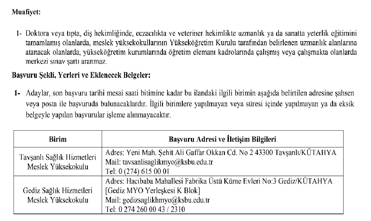 Kütahya Sağlık Bilimleri Üniversitesi Öğretim Elemanı Alım İlanı. Son başvuru tarihi 11 temmuz 2025