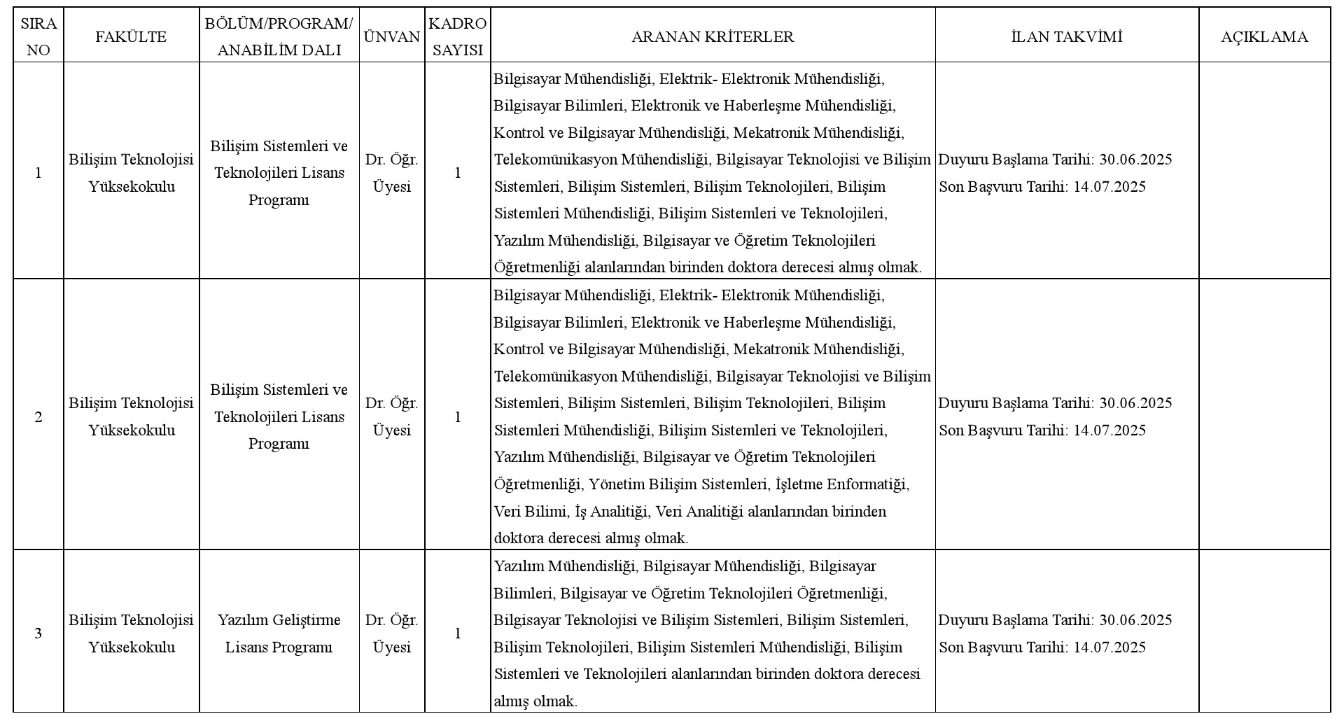 ÖĞRETİM ÜYESİ ALIM İLANI