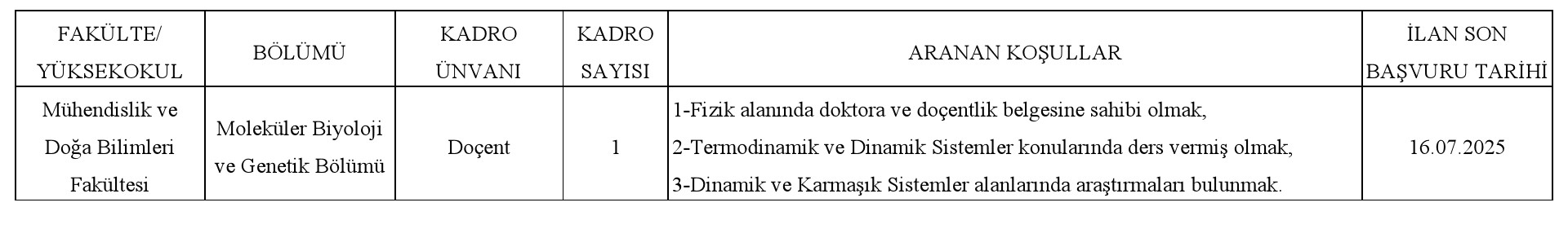 ÖĞRETİM ÜYESİ ALIM İLANI