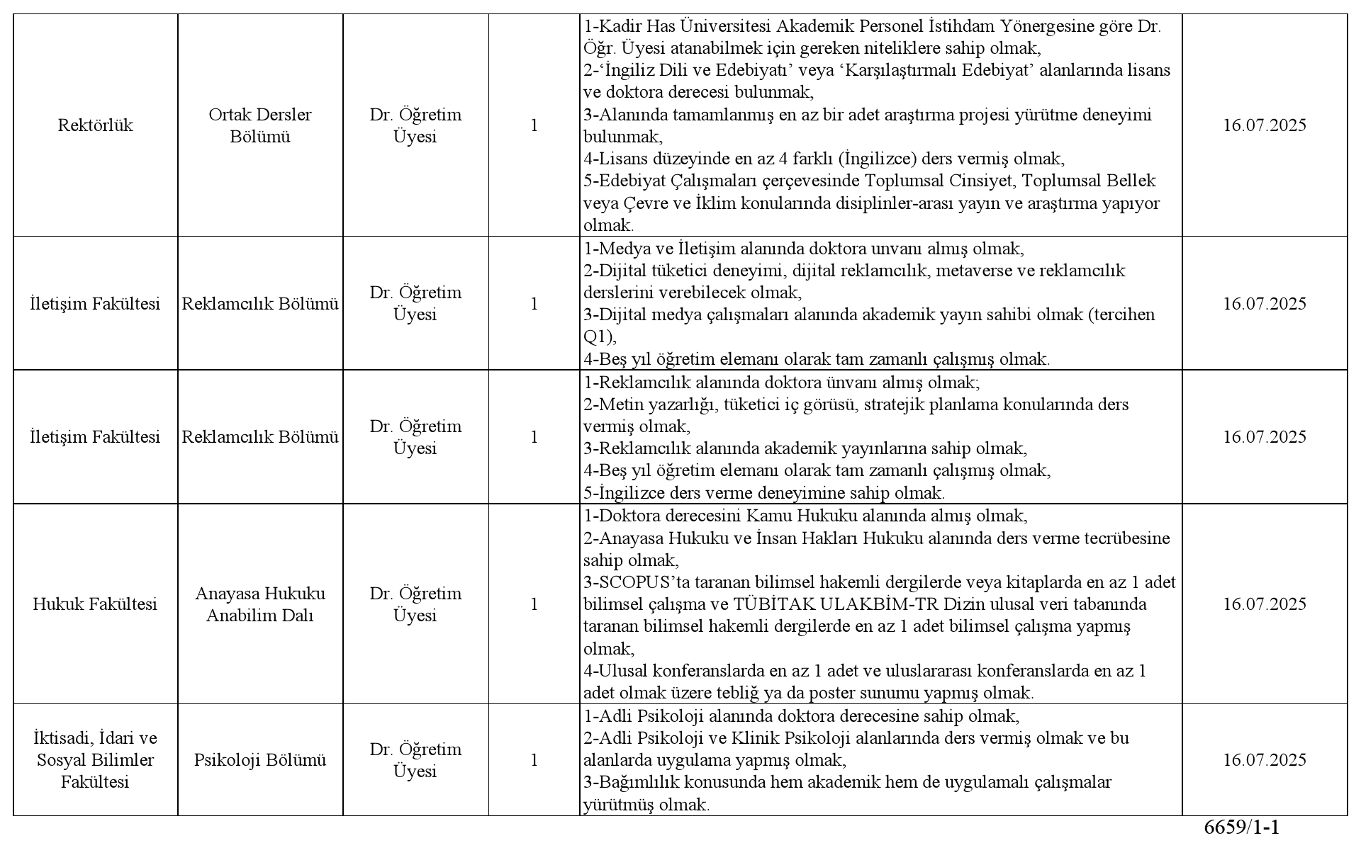 Kadir Has Üniversitesi Öğretim Üyesi Alım İlanı. Son başvuru tarihi 15 temmuz 2025